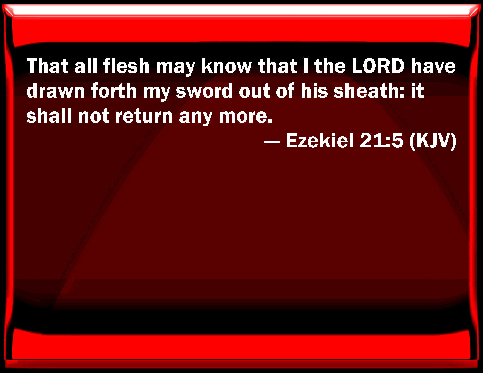 Ezekiel 21:5 That all flesh may know that I the LORD have drawn forth my sword out of his sheath: it shall not return any more.