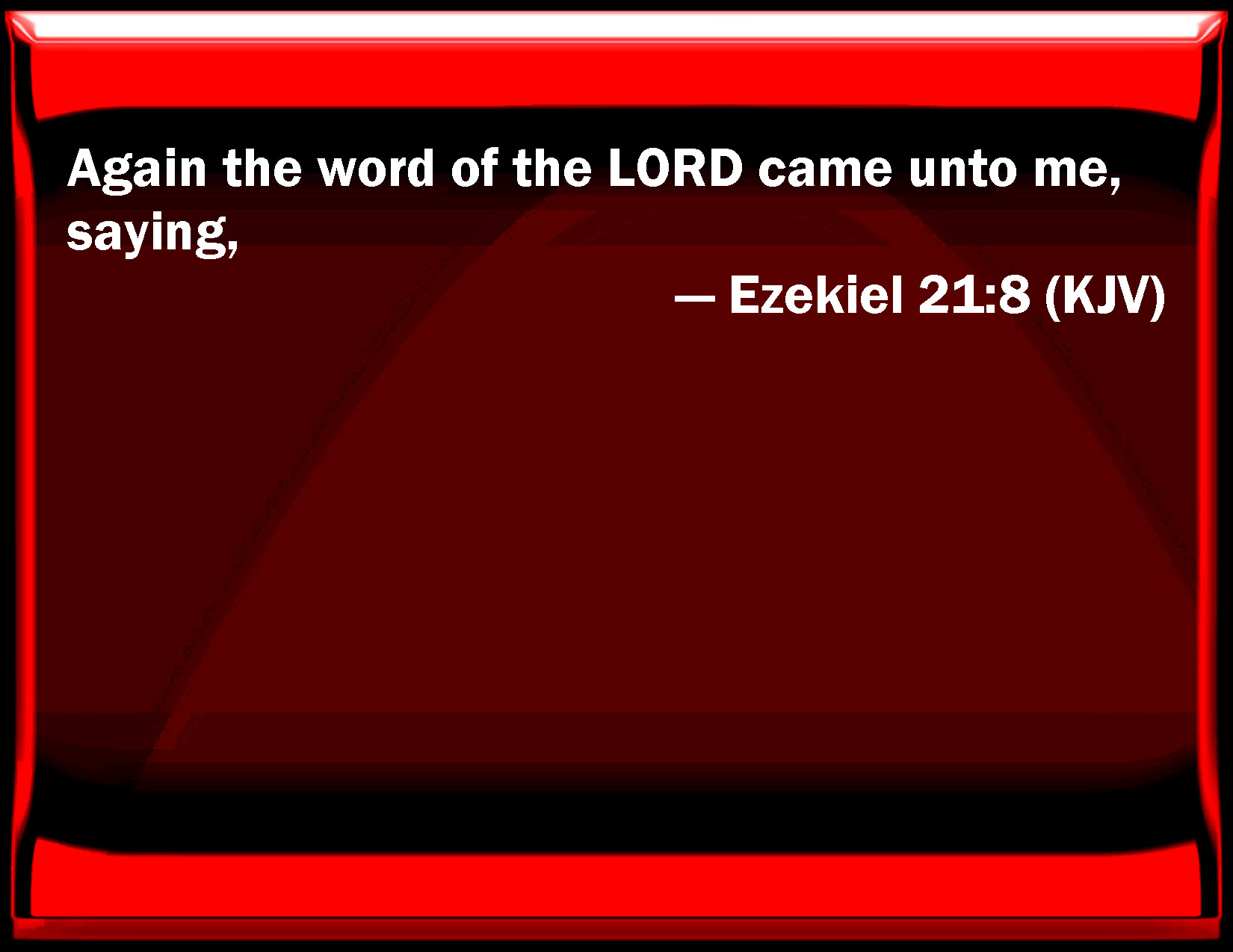 Bible Verse Slide Ezekiel 21:8 Again the word of the LORD came to me, saying, KJV: Again the word of the LORD came unto me, saying, DRB: And the word of the Lord came to me, saying: DBT: And the word of Jehovah came unto me, saying, ERV: And the word of the LORD came unto me, saying, WBT: Again the word of the LORD came to me, saying, WEB: The word of Yahweh came to me, saying, YLT: And there is a word of Jehovah unto me, saying,Links Ezekiel 21:8 NIV • Ezekiel 21:8 NLT • Ezekiel 21:8 ESV • Ezekiel 21:8 NASB • Ezekiel 21:8 KJV • Ezekiel 21:8 Interlinear • Ezekiel 21:8 Commentaries • Ezekiel 21:8 Parallel Texts • Ezekiel 21:8 Bible Apps • Ezekiel 21:8 Parallel • Bible Hub |