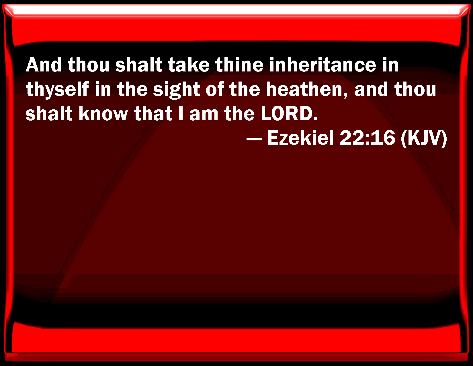 Ezekiel 22:16 And you shall take your inheritance in yourself in the sight of the heathen, and you shall know that I am the LORD.