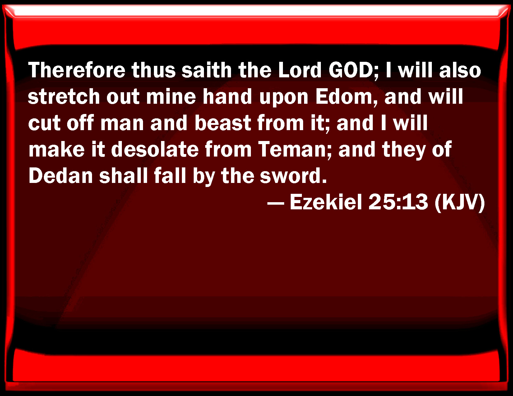 Ezekiel 25:13 Therefore thus said the Lord GOD; I will also stretch out my hand on Edom, and will cut off man and beast from it; and I will make it desolate from Teman; and they of Dedan shall fall by the sword.