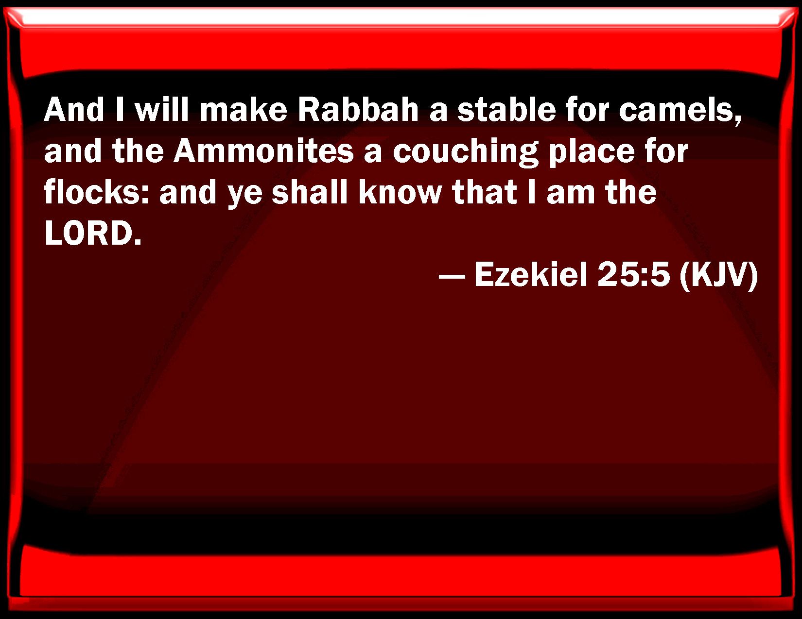 Ezekiel 25:5 And I will make Rabbah a stable for camels, and the Ammonites a couching place for flocks: and you shall know that I am the LORD.