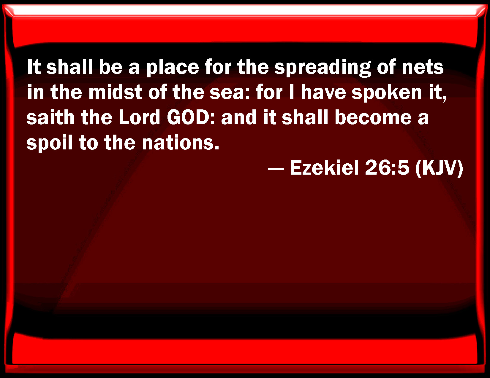 Ezekiel 26:5 It shall be a place for the spreading of nets in the middle of the sea: for I have spoken it, said the Lord GOD: and it shall become a spoil to the nations.