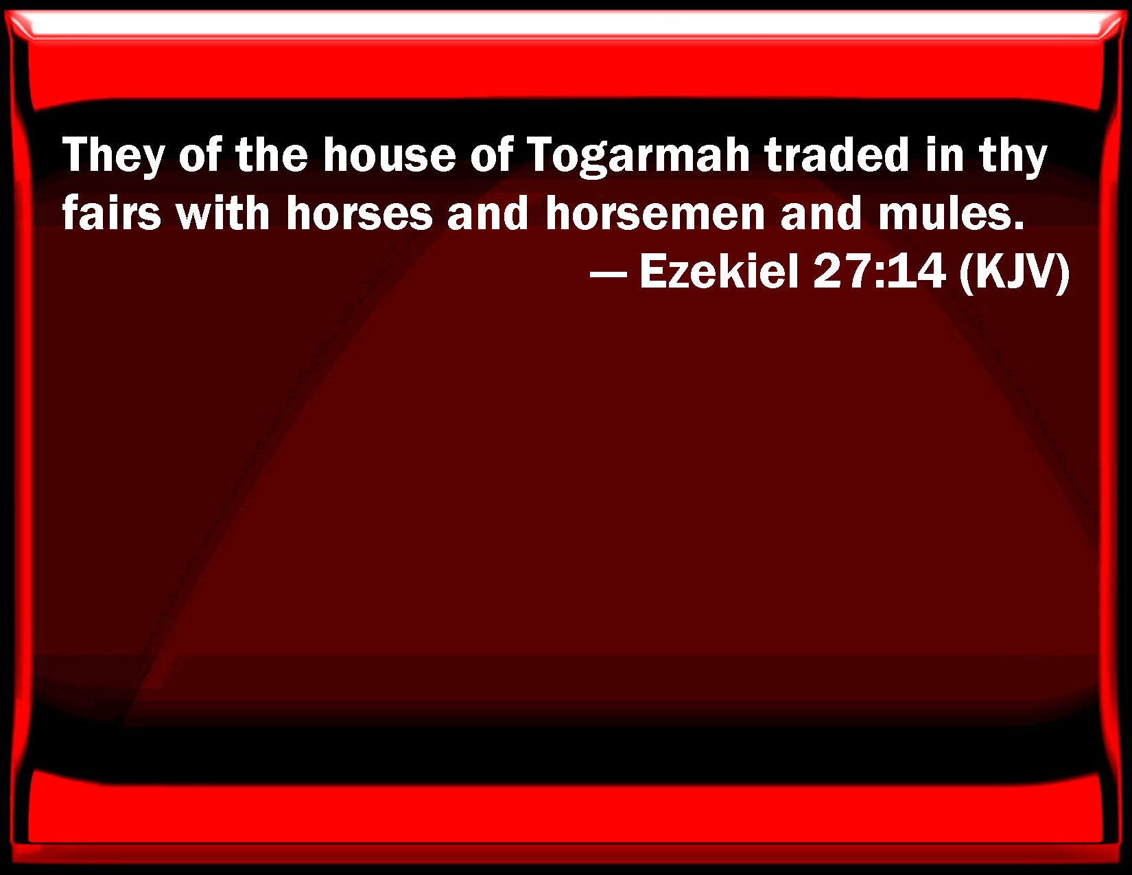 They of the house of Togarmah furnished thy markets with horses, and horsemen, and mules.