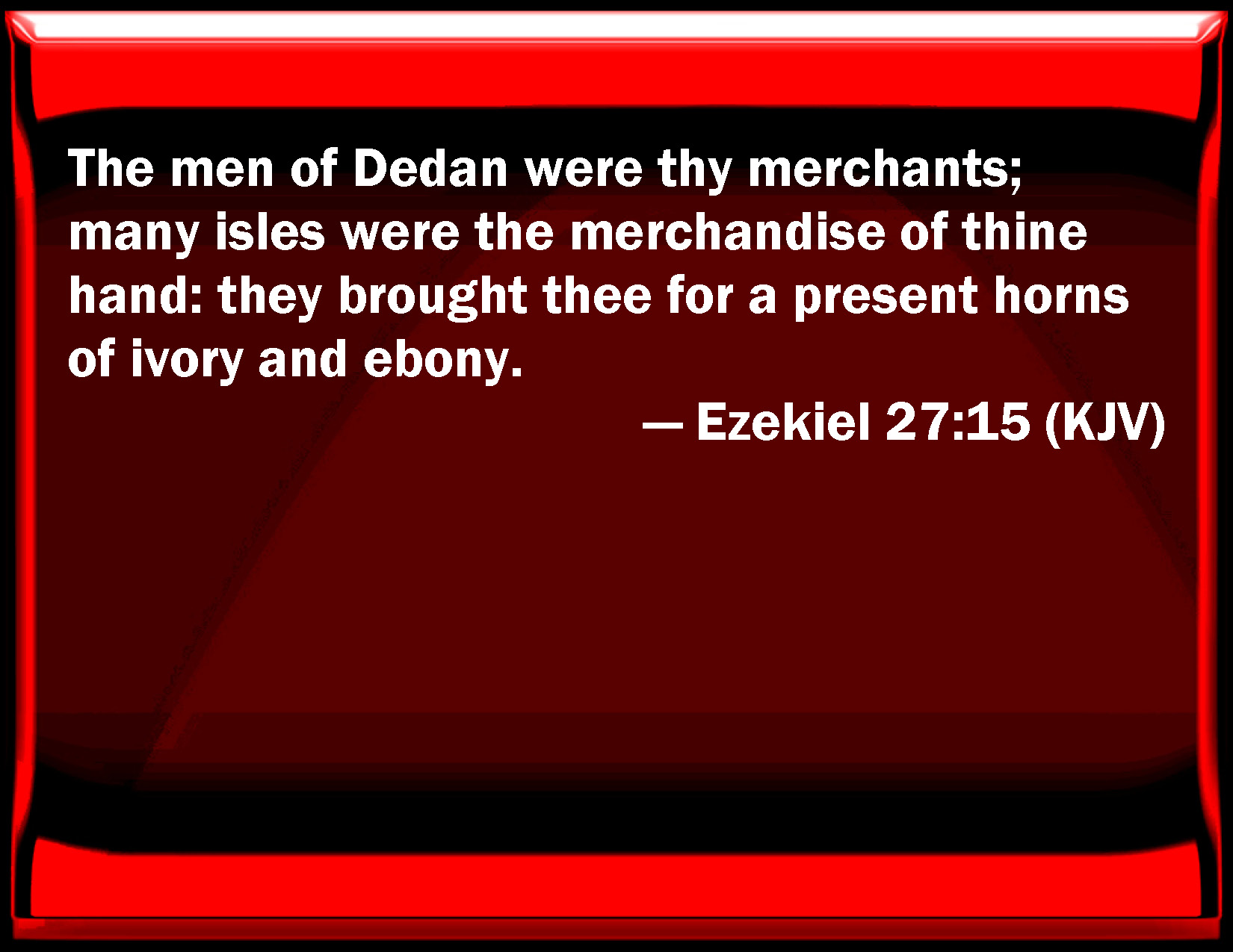 The men of Dedan were thy merchants; many isles were the merchandise of thy hand: they brought thee for a present horns of ivory and ebony.