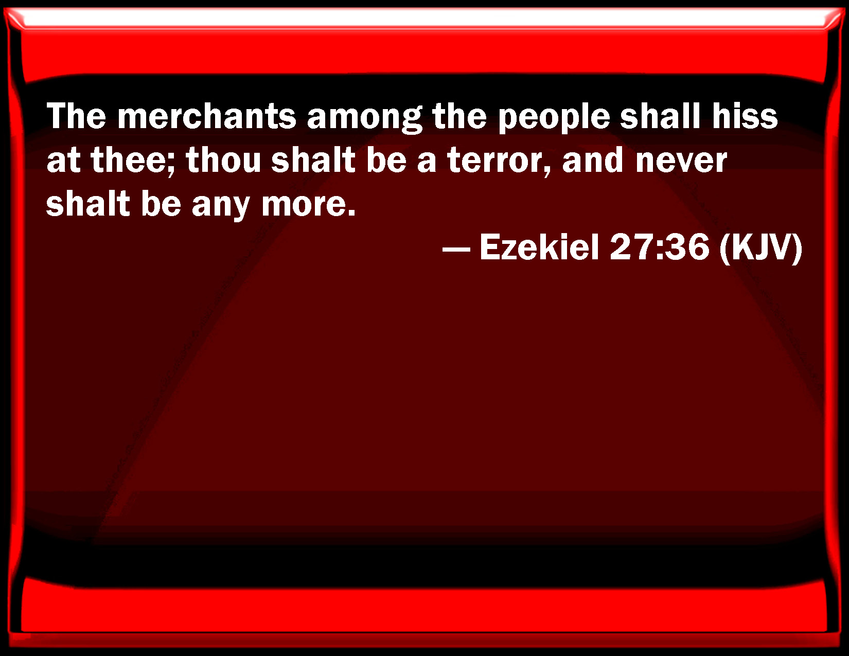 Ezekiel 27:36 The merchants among the people shall hiss at you; you shall be a terror, and never shall be any more.