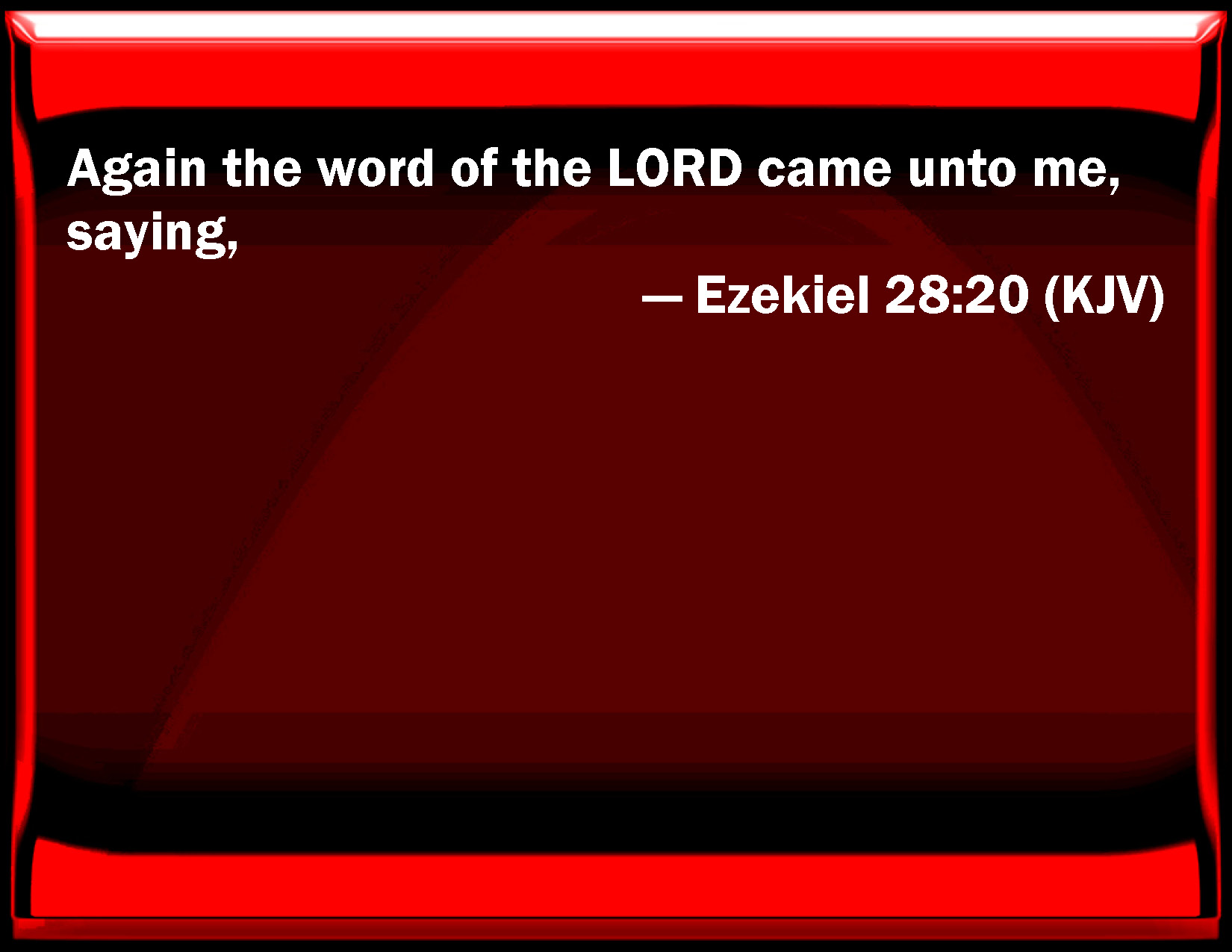 Bible Verse Slide Ezekiel 28:20 Again the word of the LORD came to me, saying, KJV: Again the word of the LORD came unto me, saying, DRB: And the word of the Lord came to me, saying: DBT: And the word of Jehovah came unto me, saying, ERV: And the word of the LORD came unto me, saying, WBT: Again the word of the LORD came to me, saying, WEB: The word of Yahweh came to me, saying, YLT: And there is a word of Jehovah unto me, saying,Links Ezekiel 28:20 NIV • Ezekiel 28:20 NLT • Ezekiel 28:20 ESV • Ezekiel 28:20 NASB • Ezekiel 28:20 KJV • Ezekiel 28:20 Interlinear • Ezekiel 28:20 Commentaries • Ezekiel 28:20 Parallel Texts • Ezekiel 28:20 Bible Apps • Ezekiel 28:20 Parallel • Bible Hub |