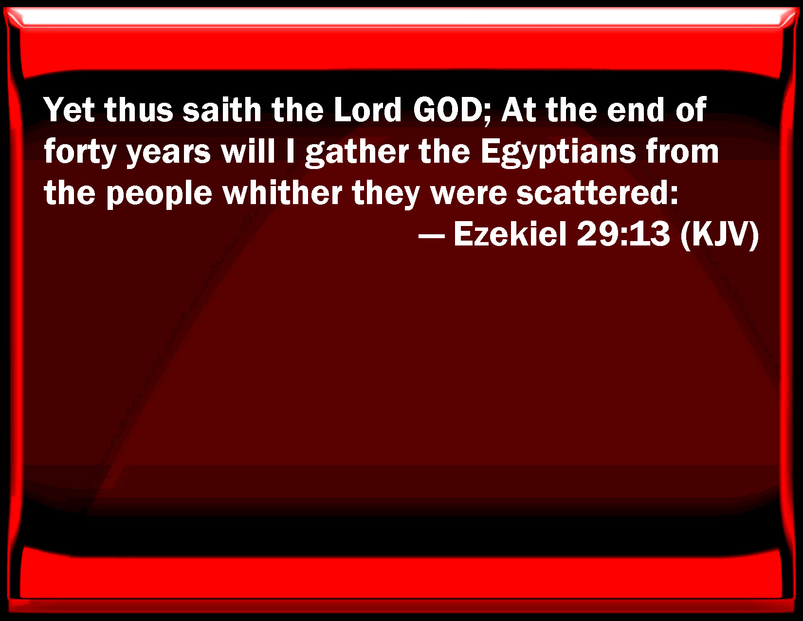 Ezekiel 29:13 Yet thus said the Lord GOD; At the end of forty years will I gather the Egyptians from the people where they were scattered: