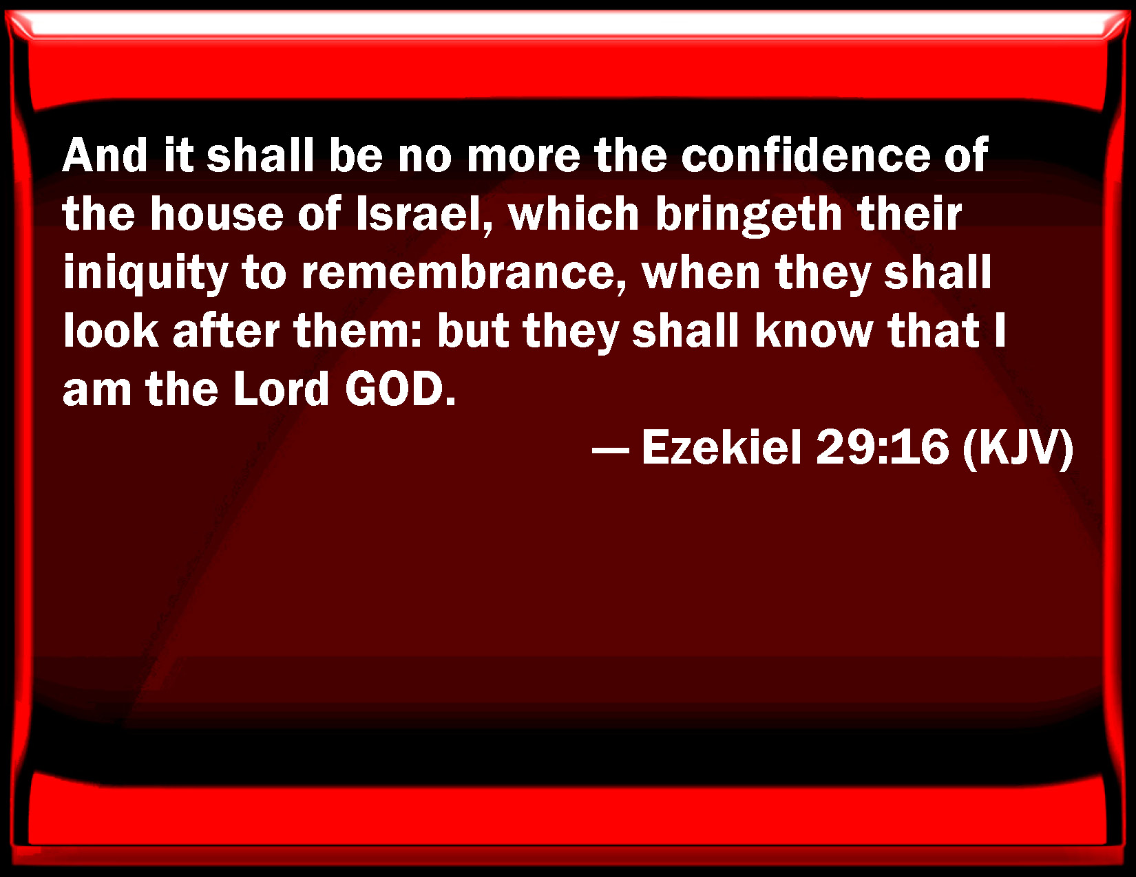 Ezekiel 29:16 And it shall be no more the confidence of the house of Israel, which brings their iniquity to remembrance, when they shall look after them: but they shall know that I am the Lord GOD.
