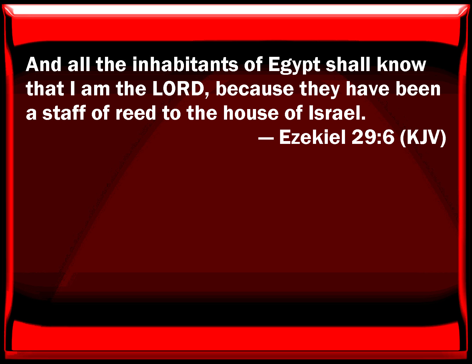 Ezekiel 29:6 And all the inhabitants of Egypt shall know that I am the LORD, because they have been a staff of reed to the house of Israel.