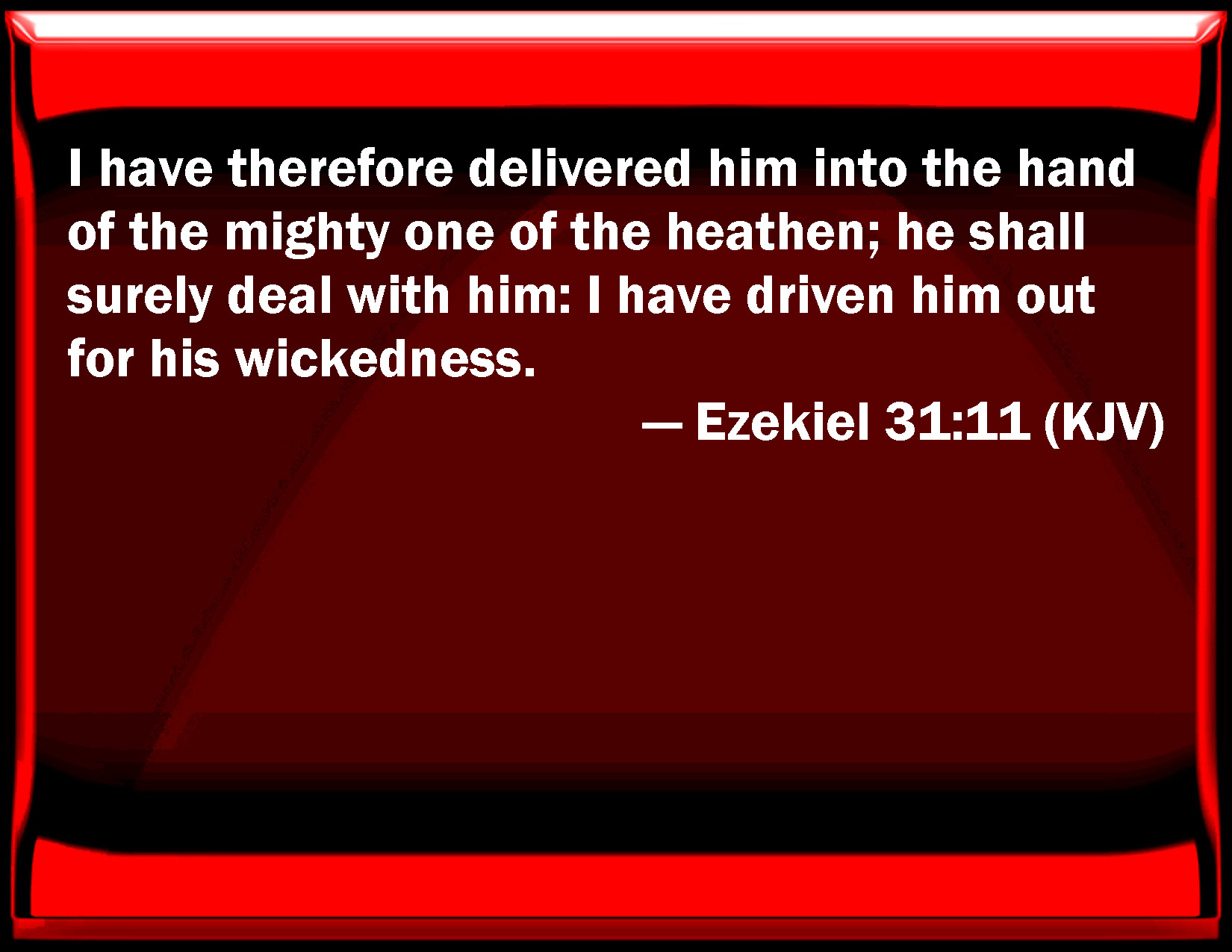 Ezekiel 31:11 I have therefore delivered him into the hand of the mighty one of the heathen; he shall surely deal with him: I have driven him out for his wickedness.