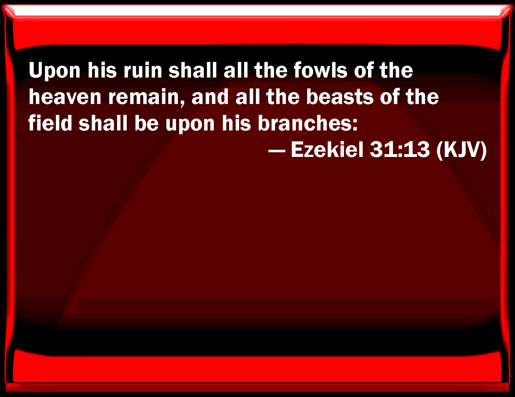 Ezekiel 31:13 On his ruin shall all the fowls of the heaven remain, and all the beasts of the field shall be on his branches: