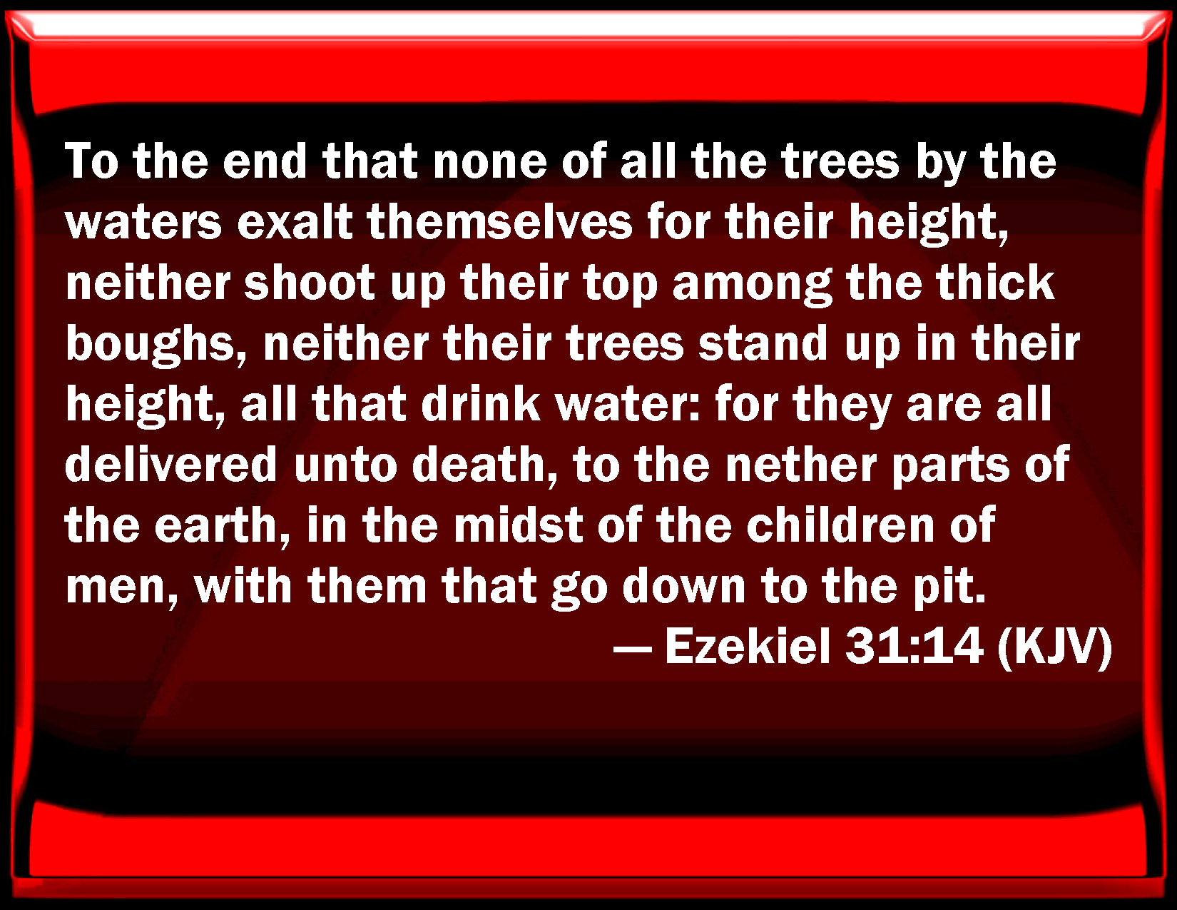 to the end that none of all the trees by the waters exalt themselves in their stature, nor set their top amidst the thick boughs, and that none of them that drink water stand up in his height by himself; for they are all given over unto death in the lower parts of the earth, in the midst of the children of men, with them that go down to the pit.
