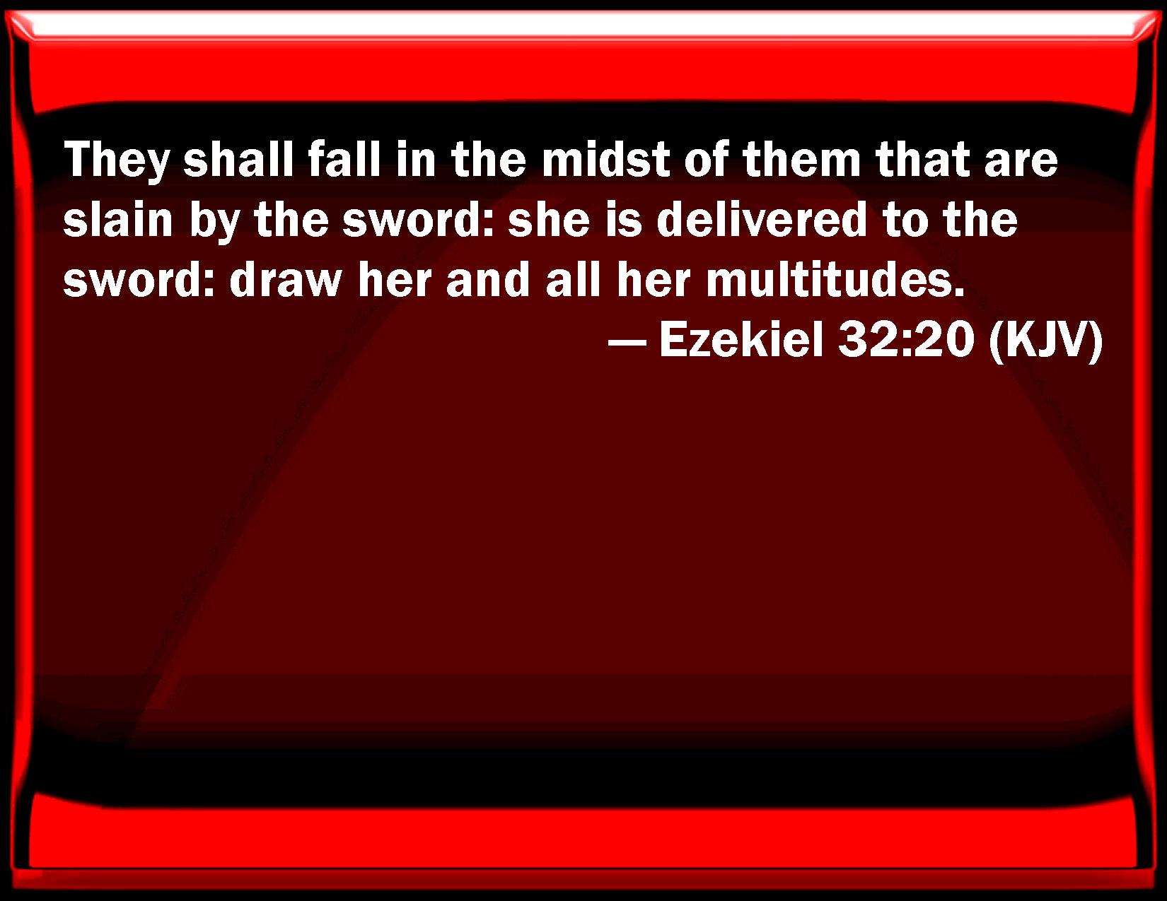Ezekiel 32:20 They shall fall in the middle of them that are slain by the sword: she is delivered to the sword: draw her and all her multitudes.