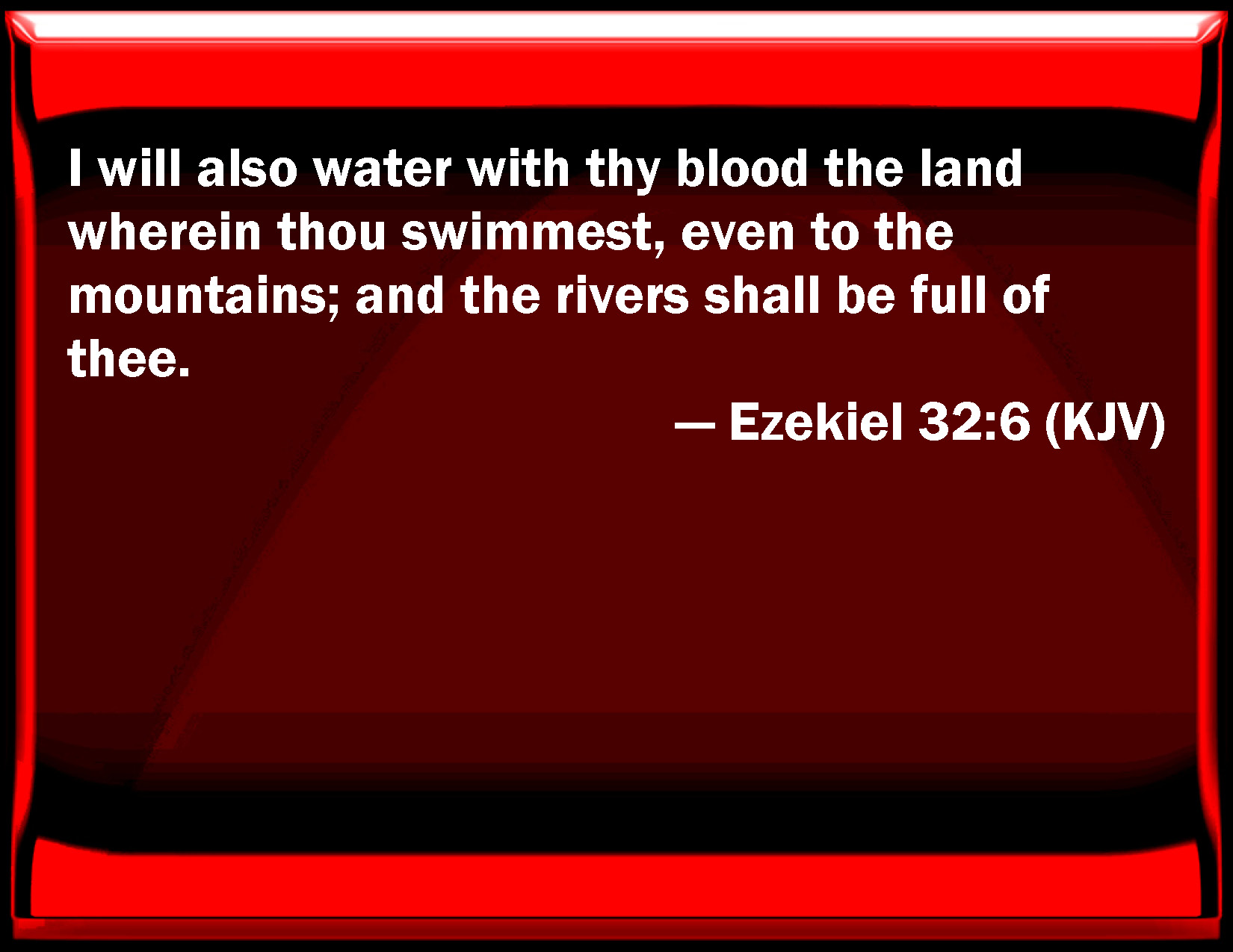 Ezekiel 32:6 I will also water with your blood the land wherein you swim, even to the mountains; and the rivers shall be full of you.