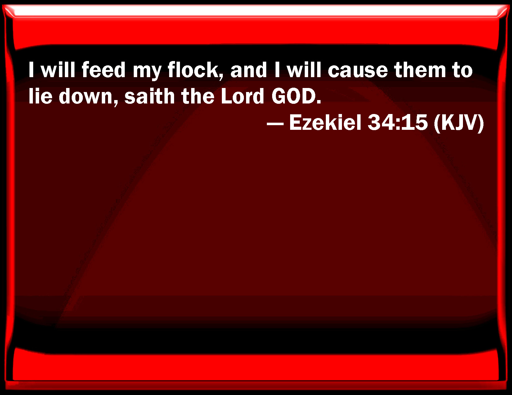 Bible Verse Slide Ezekiel 34:15 I will feed my flock, and I will cause them to lie down, said the Lord GOD. KJV: I will feed my flock, and I will cause them to lie down, saith the Lord GOD. DRB: I will feed my sheep : and I will cause them to lie down, saith the Lord God. DBT: I will myself feed my flock, and I will cause them to lie down, saith the Lord Jehovah. ERV: I myself will feed my sheep, and I will cause them to lie down, saith the Lord GOD. WBT: I will feed my flock, and I will cause them to lie down, saith the Lord GOD. WEB: I myself will be the shepherd of my sheep, and I will cause them to lie down, says the Lord Yahweh. YLT: I feed My flock, and cause them to lie down, An affirmation of the Lord Jehovah.Links Ezekiel 34:15 NIV • Ezekiel 34:15 NLT • Ezekiel 34:15 ESV • Ezekiel 34:15 NASB • Ezekiel 34:15 KJV • Ezekiel 34:15 Interlinear • Ezekiel 34:15 Commentaries • Ezekiel 34:15 Parallel Texts • Ezekiel 34:15 Bible Apps • Ezekiel 34:15 Parallel • Bible Hub |