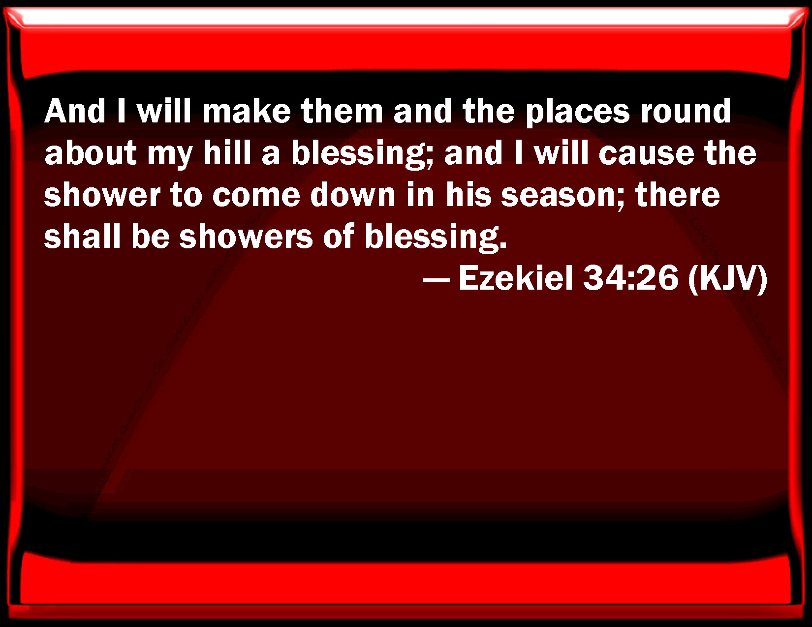 And I have given them, and the suburbs of my hill, a blessing, And caused the shower to come down in its season, Showers of blessing they are.