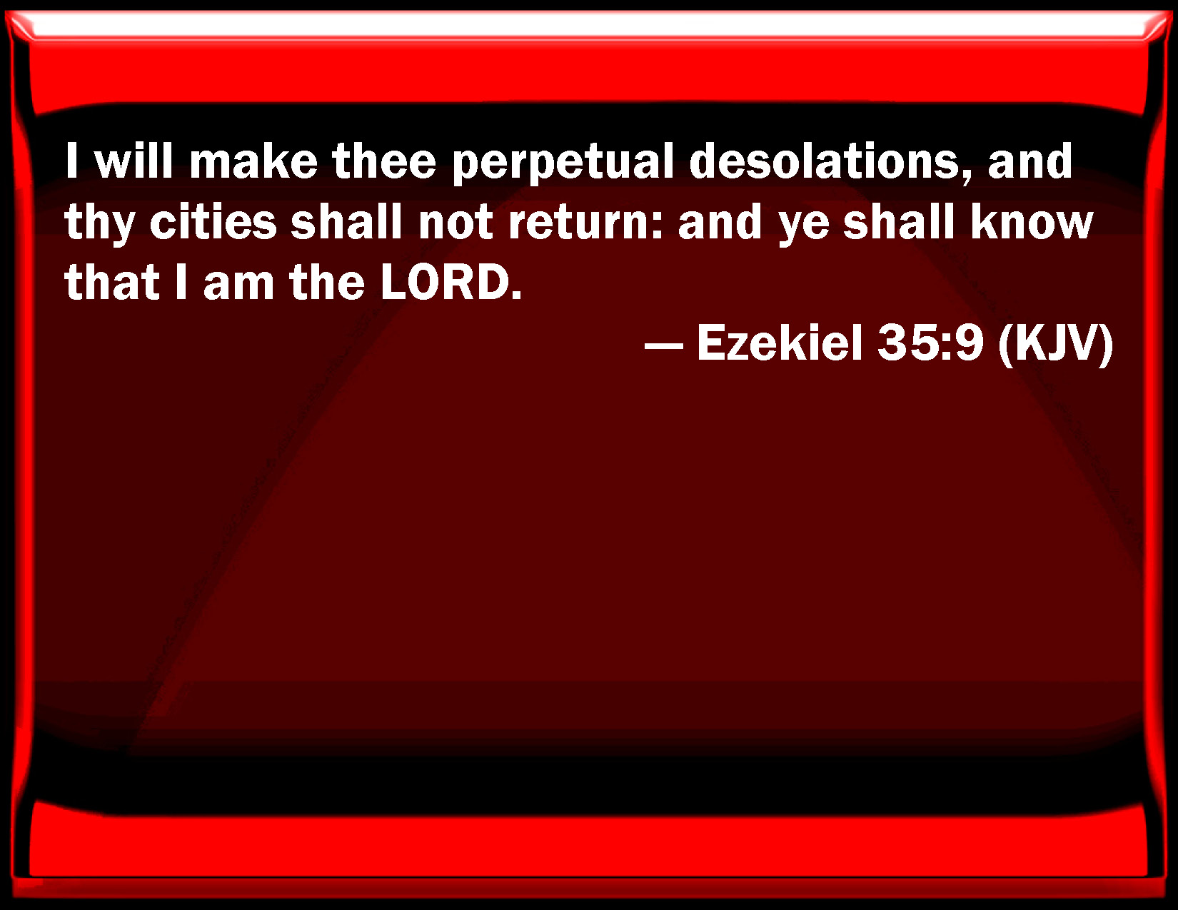 Ezekiel 35:9 I will make you perpetual desolations, and your cities shall not return: and you shall know that I am the LORD.