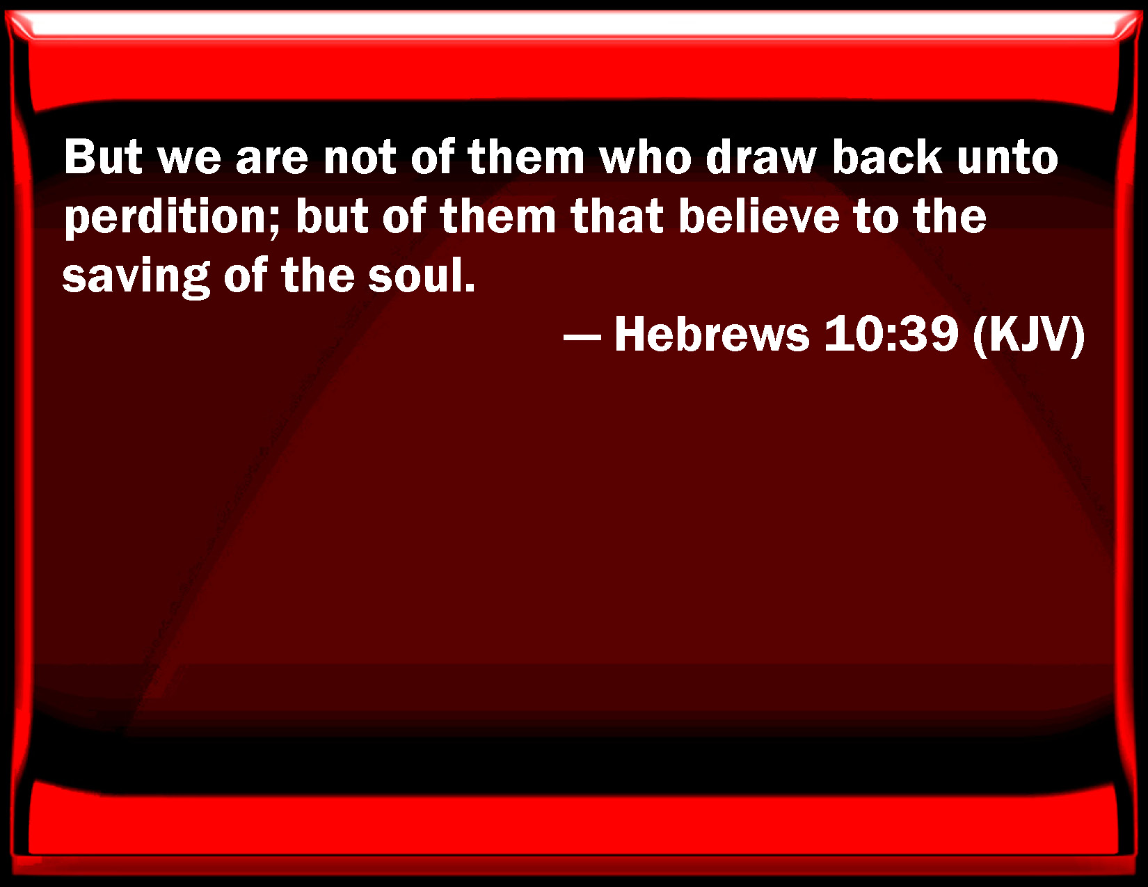 Hebrews 10:39 But we are not of them who draw back to perdition; but of them that believe to the saving of the soul.