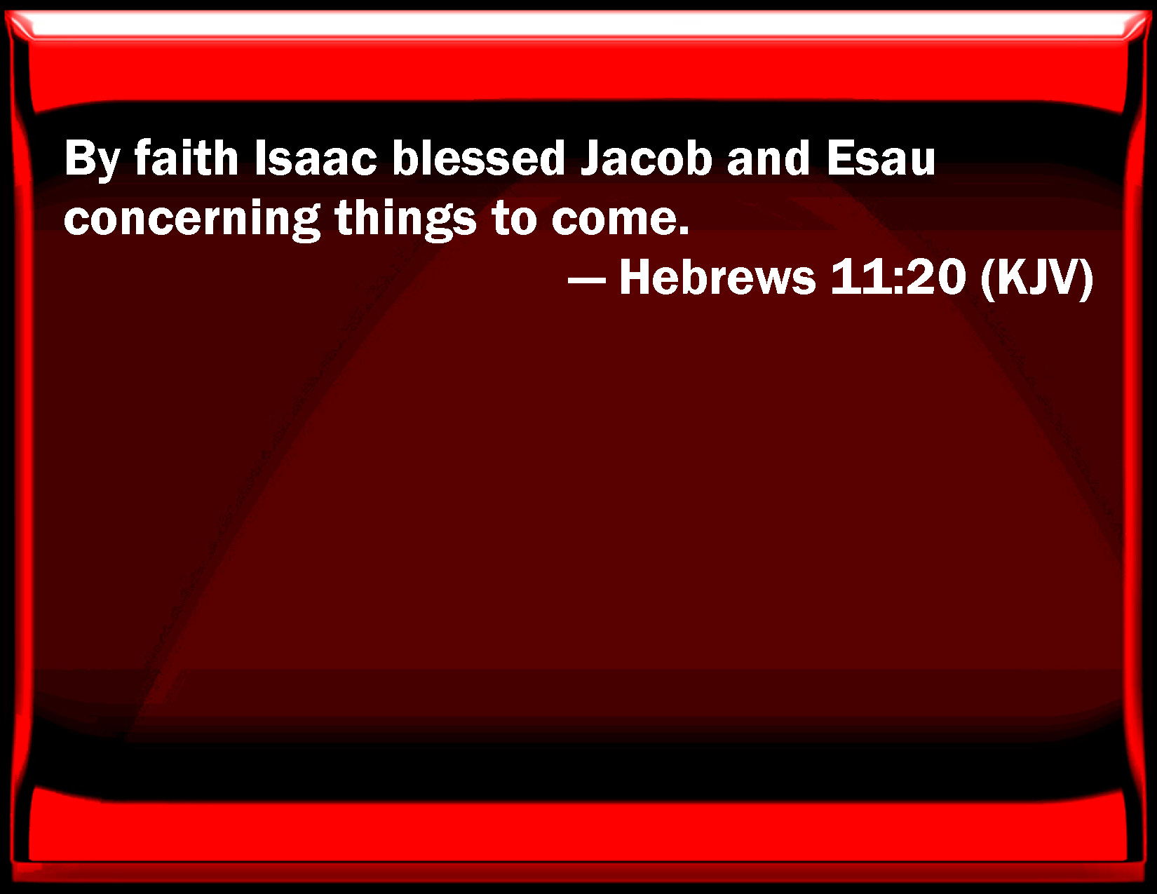Hebrews 11:20 By faith Isaac blessed Jacob and Esau concerning things to come.
