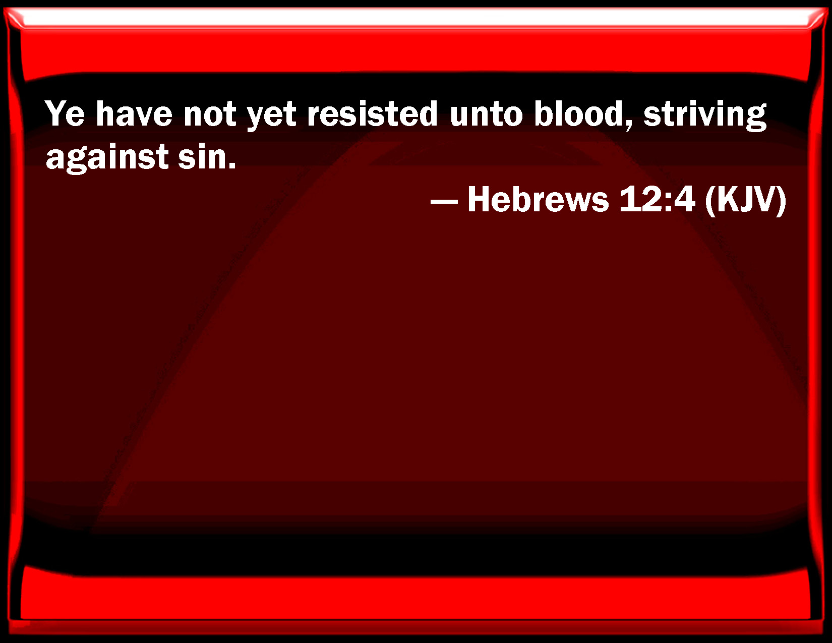 Hebrews 12:4 You have not yet resisted to blood, striving against sin.