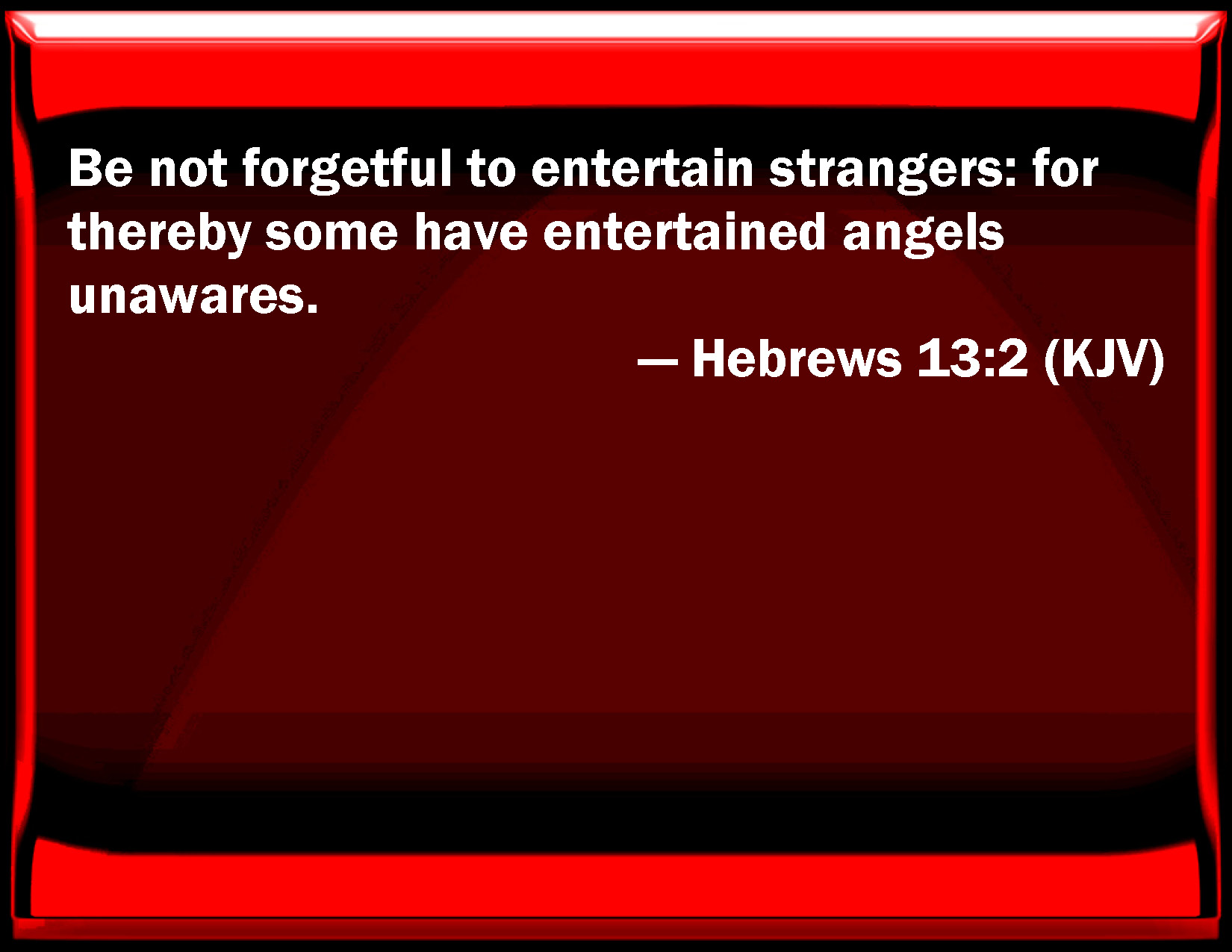 Be not forgetful to entertain strangers: for thereby some have entertained angels unawares.