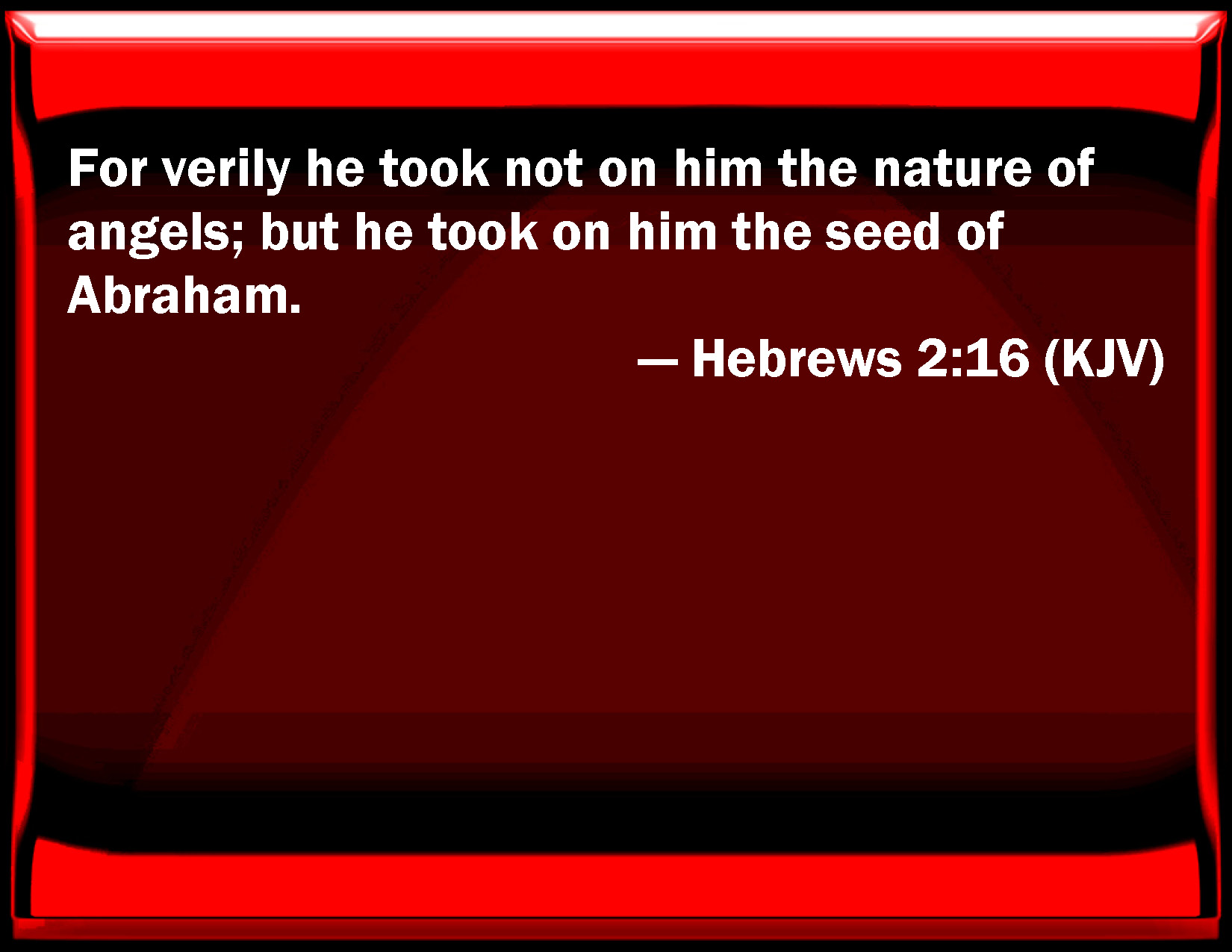 Hebrews 2:16 For truly he took not on him the nature of angels; but he took on him the seed of Abraham.