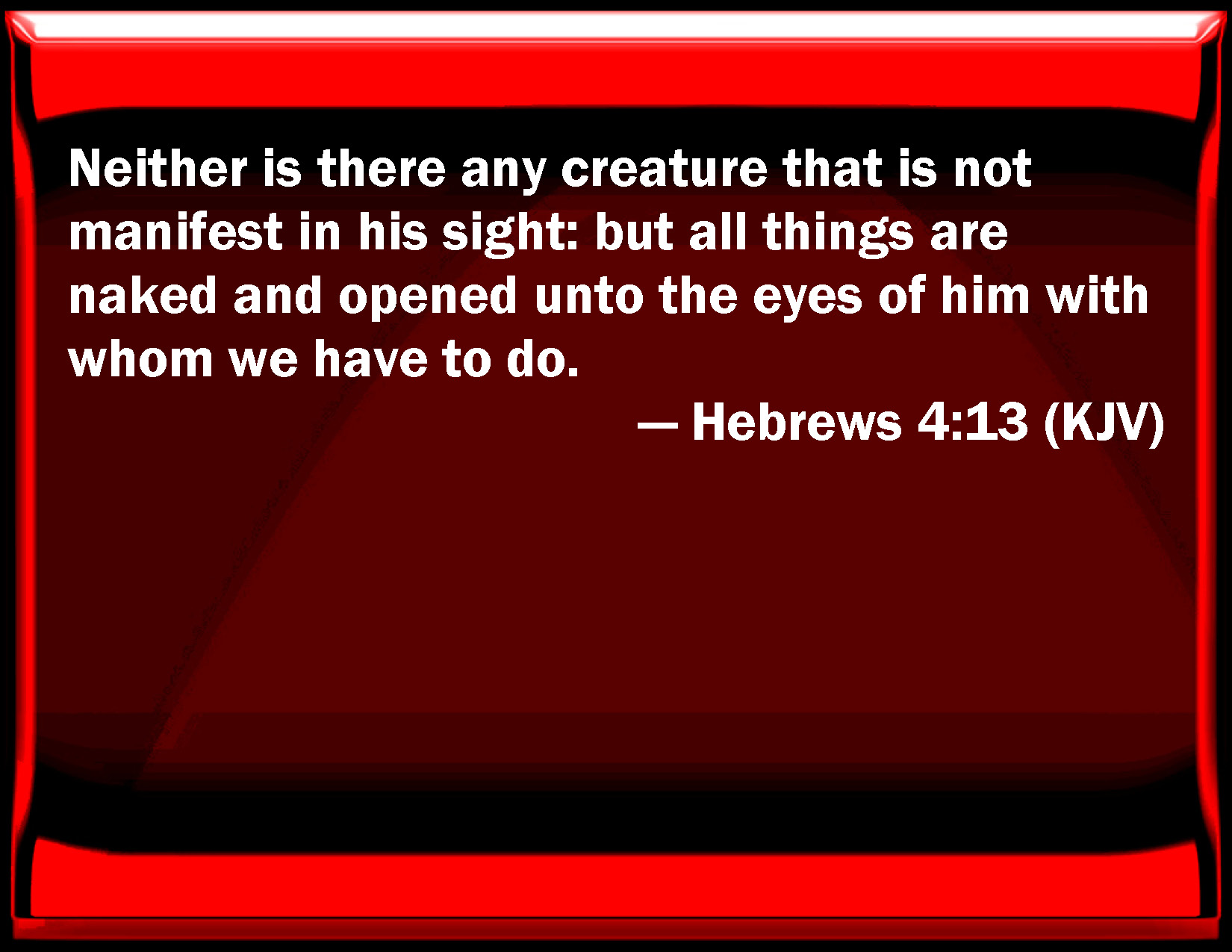 Hebrews 4:13 Neither is there any creature that is not manifest in his sight: but all things are naked and opened to the eyes of him with whom we have to do.