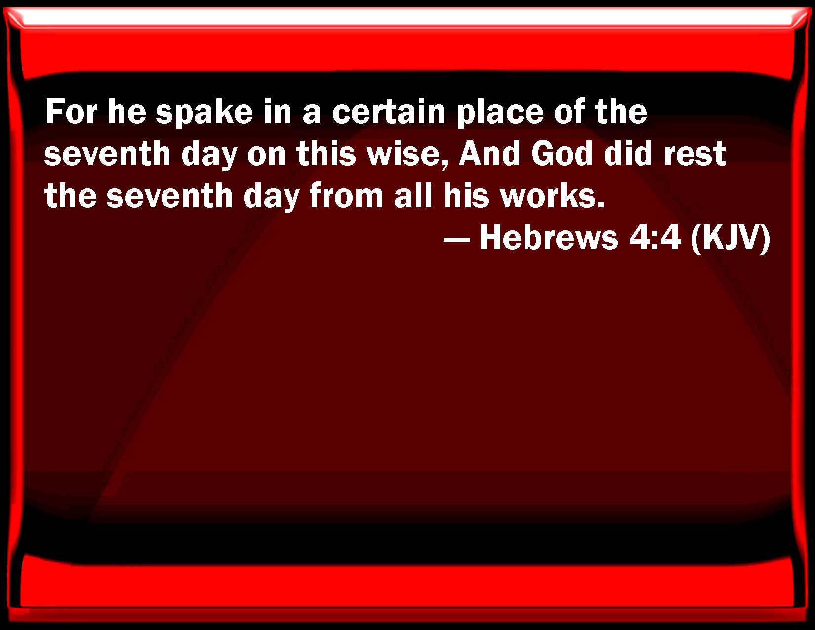 Hebrews 4:4 For he spoke in a certain place of the seventh day on this wise, And God did rest the seventh day from all his works.