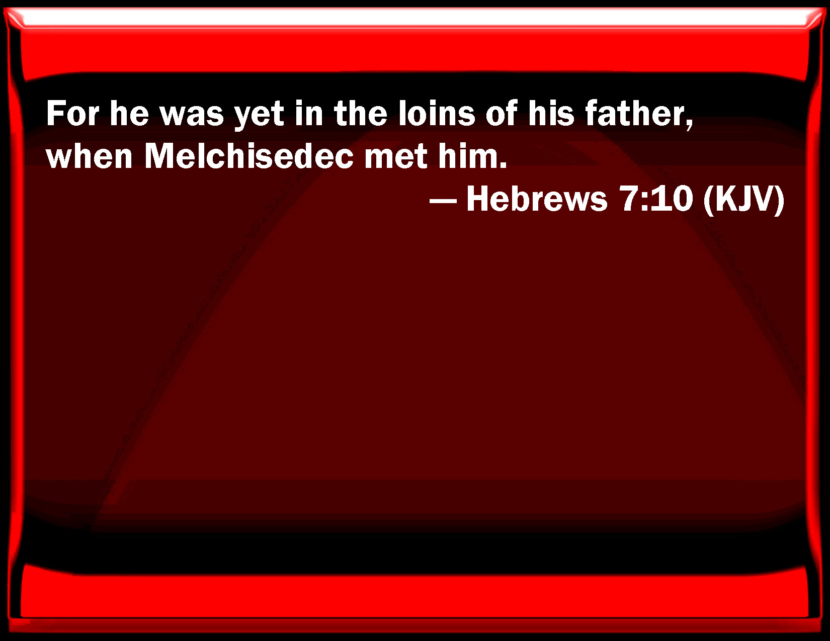 Hebrews 7:10 For he was yet in the loins of his father, when Melchisedec met him.