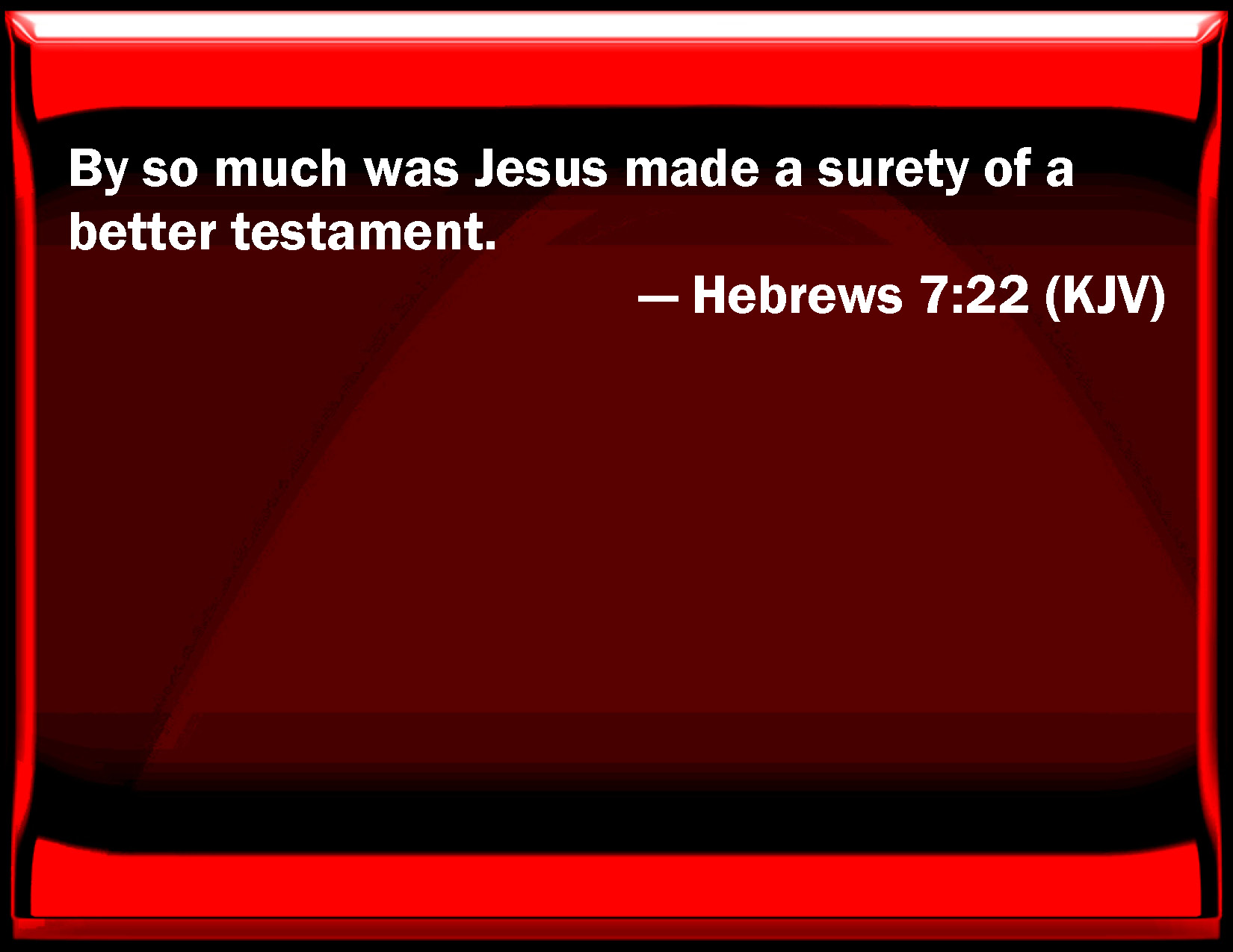 Hebrews 7:22 By so much was Jesus made a surety of a better testament.