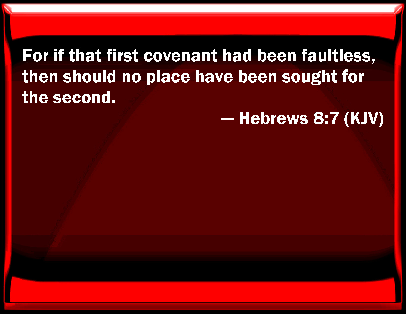 Hebrews 8:7 For if that first covenant had been faultless, then should no place have been sought for the second.