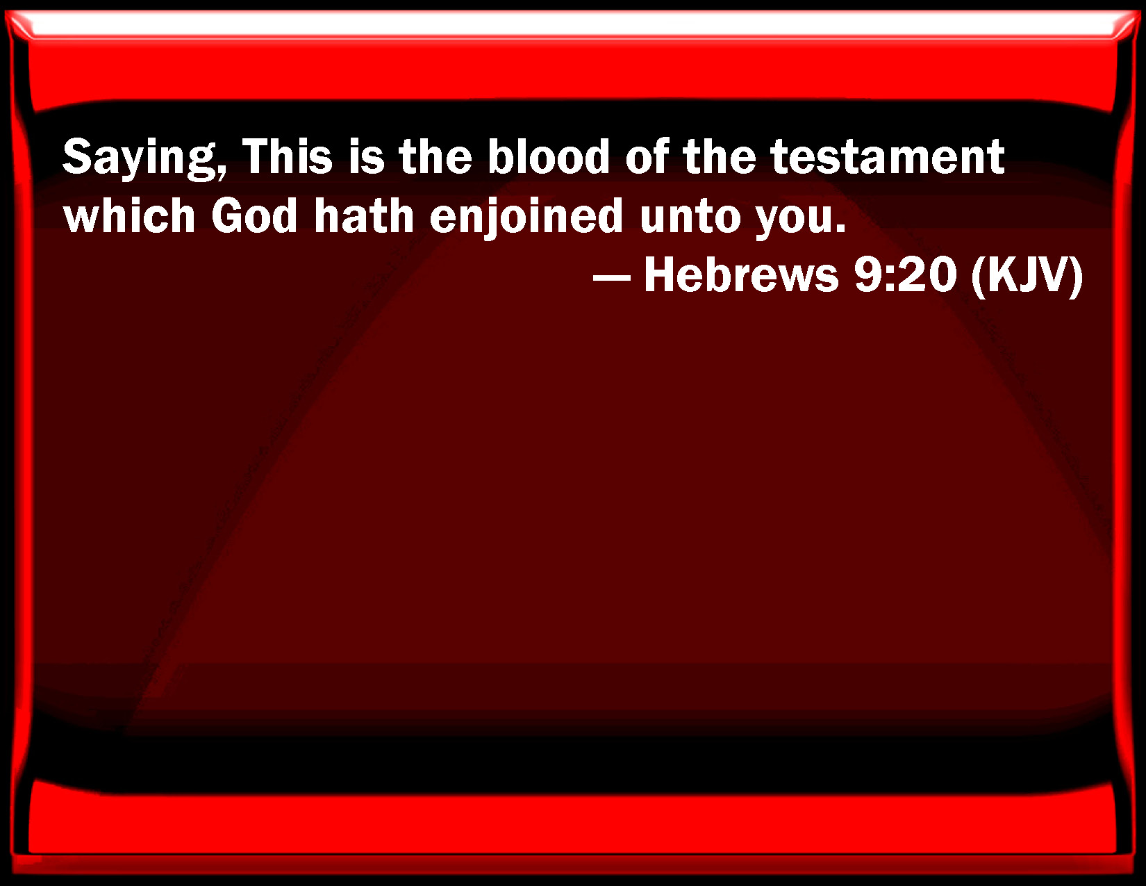 Hebrews 9:20 Saying, This is the blood of the testament which God has enjoined to you.