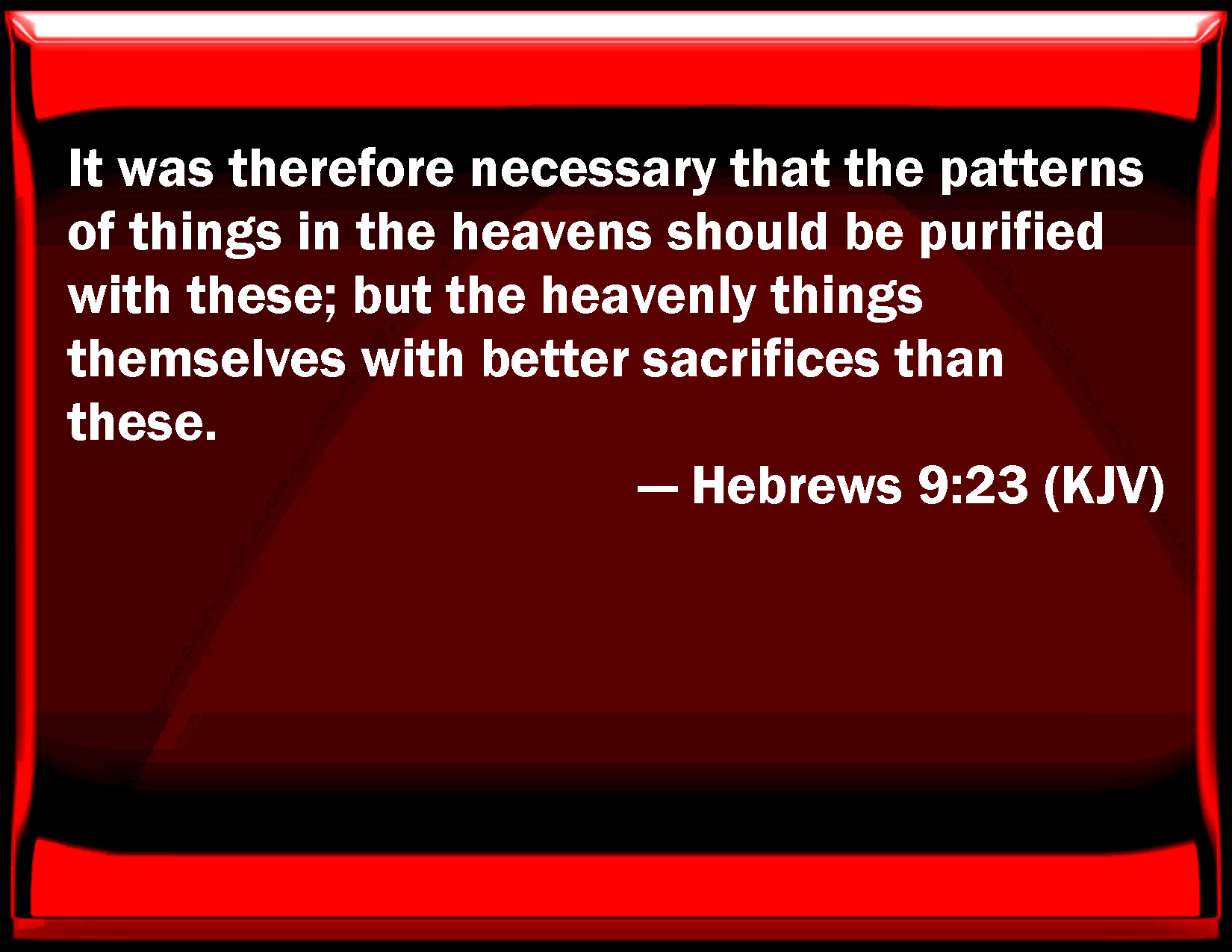 Hebrews 9:23 It was therefore necessary that the patterns of things in the heavens should be purified with these; but the heavenly things themselves with better sacrifices than these.