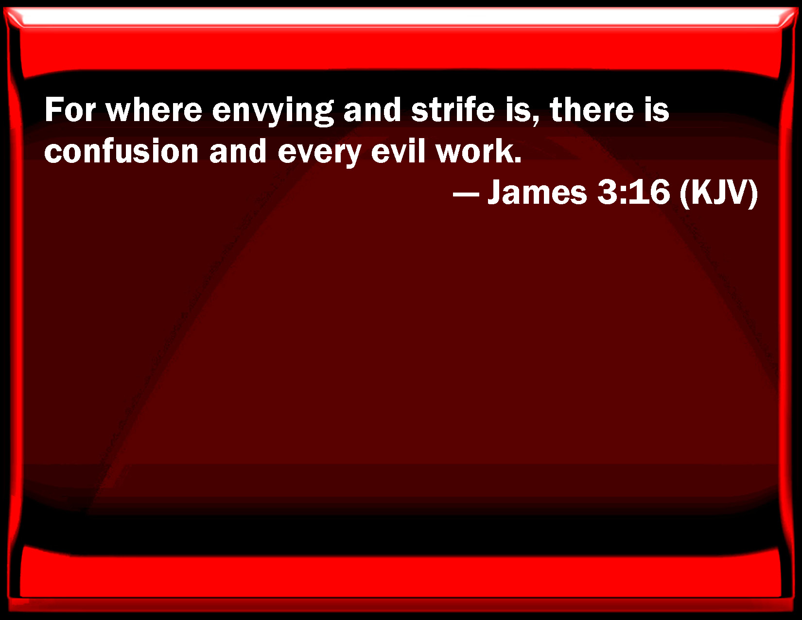 James 3:16 For where envying and strife is, there is confusion and every evil work.
