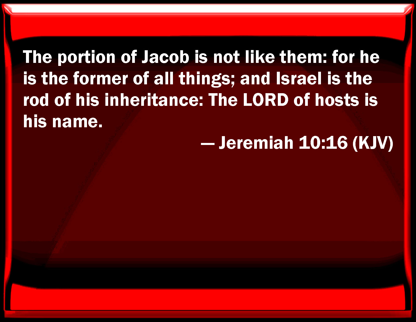 Jeremiah 10:16 The portion of Jacob is not like them: for he is the former of all things; and Israel is the rod of his inheritance: The LORD of hosts is his name.