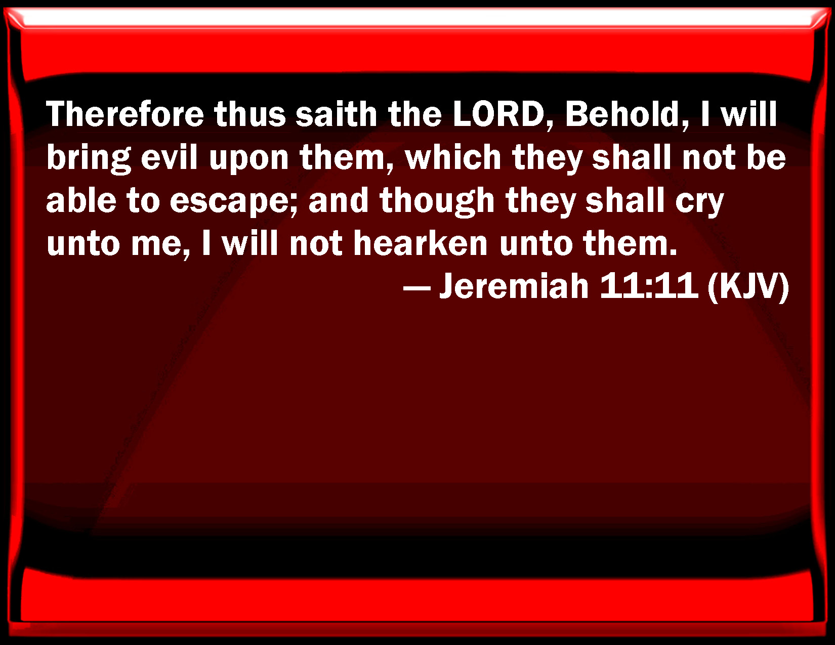 WBT:  Therefore thus saith the LORD, Behold, I will bring evil upon them which they shall not be able to escape; and though they shall cry to me, I will not hearken to them.