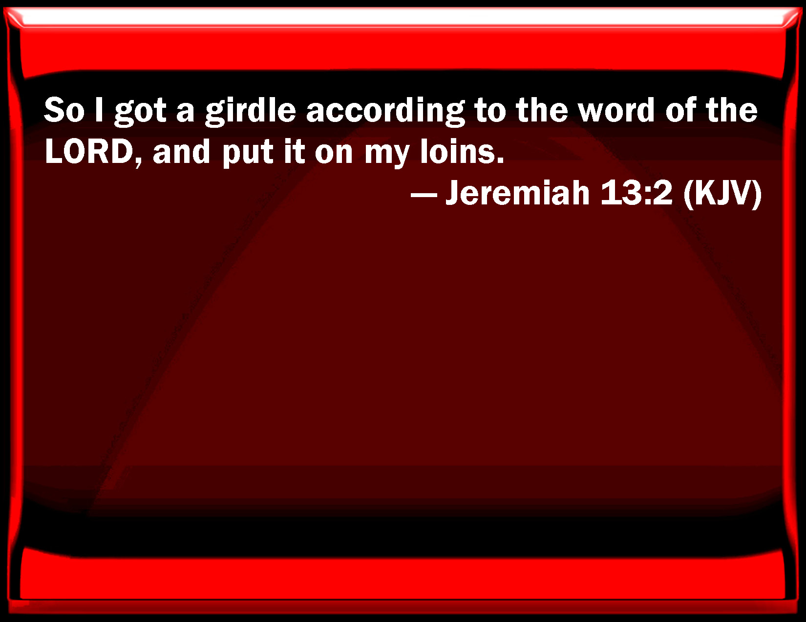 Jeremiah 13:2 So I got a girdle according to the word of the LORD, and put it on my loins.