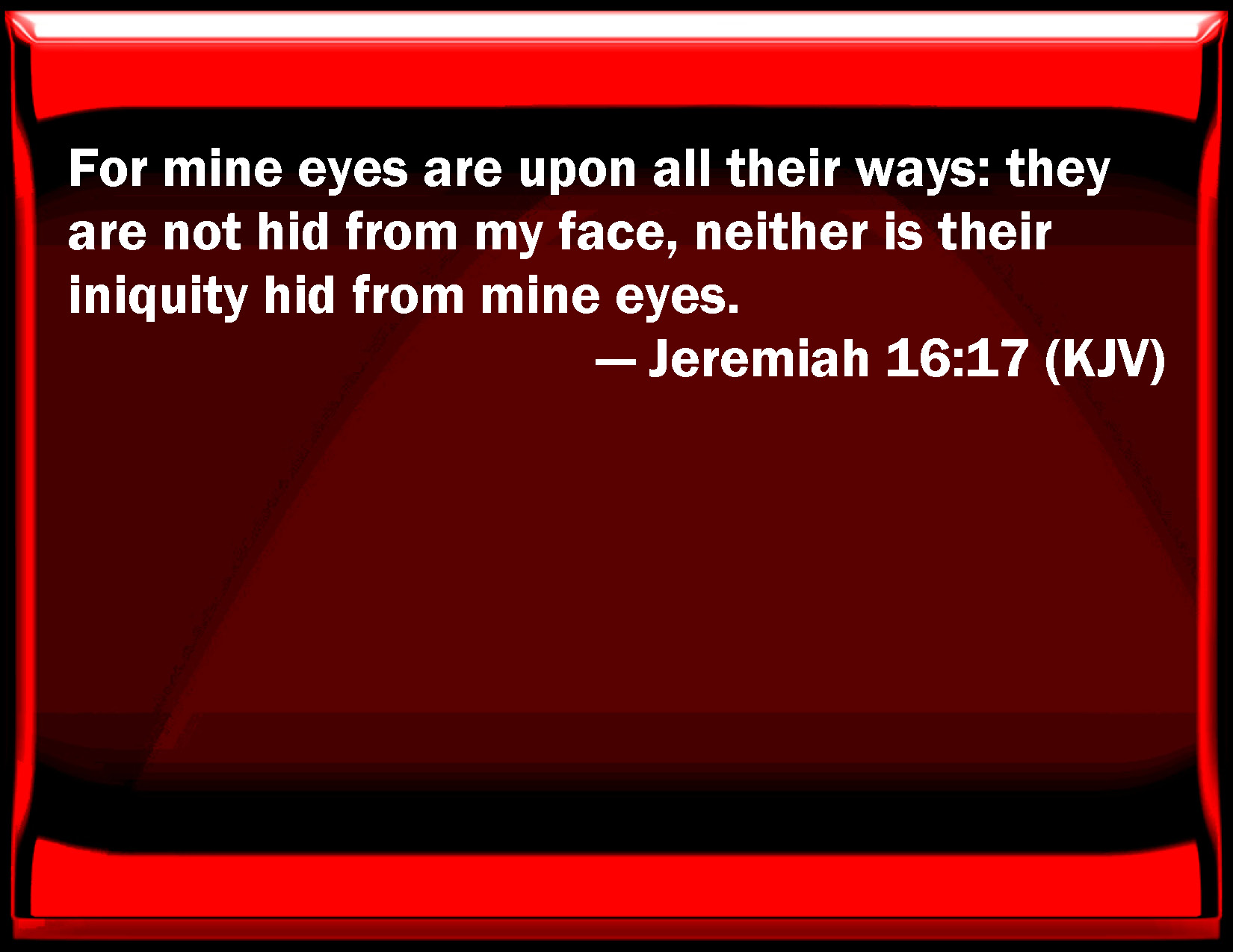 Jeremiah 16:17 For my eyes are on all their ways: they are not hid from my face, neither is their iniquity hid from my eyes.