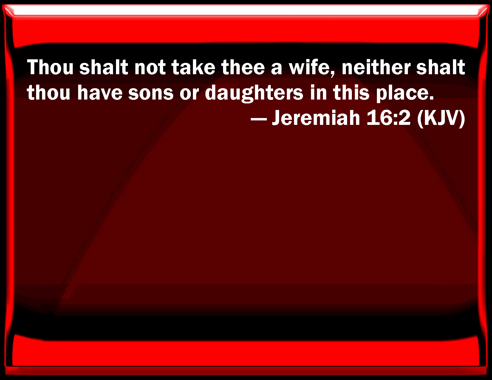 Jeremiah 16:2 You shall not take you a wife, neither shall you have sons or daughters in this place.
