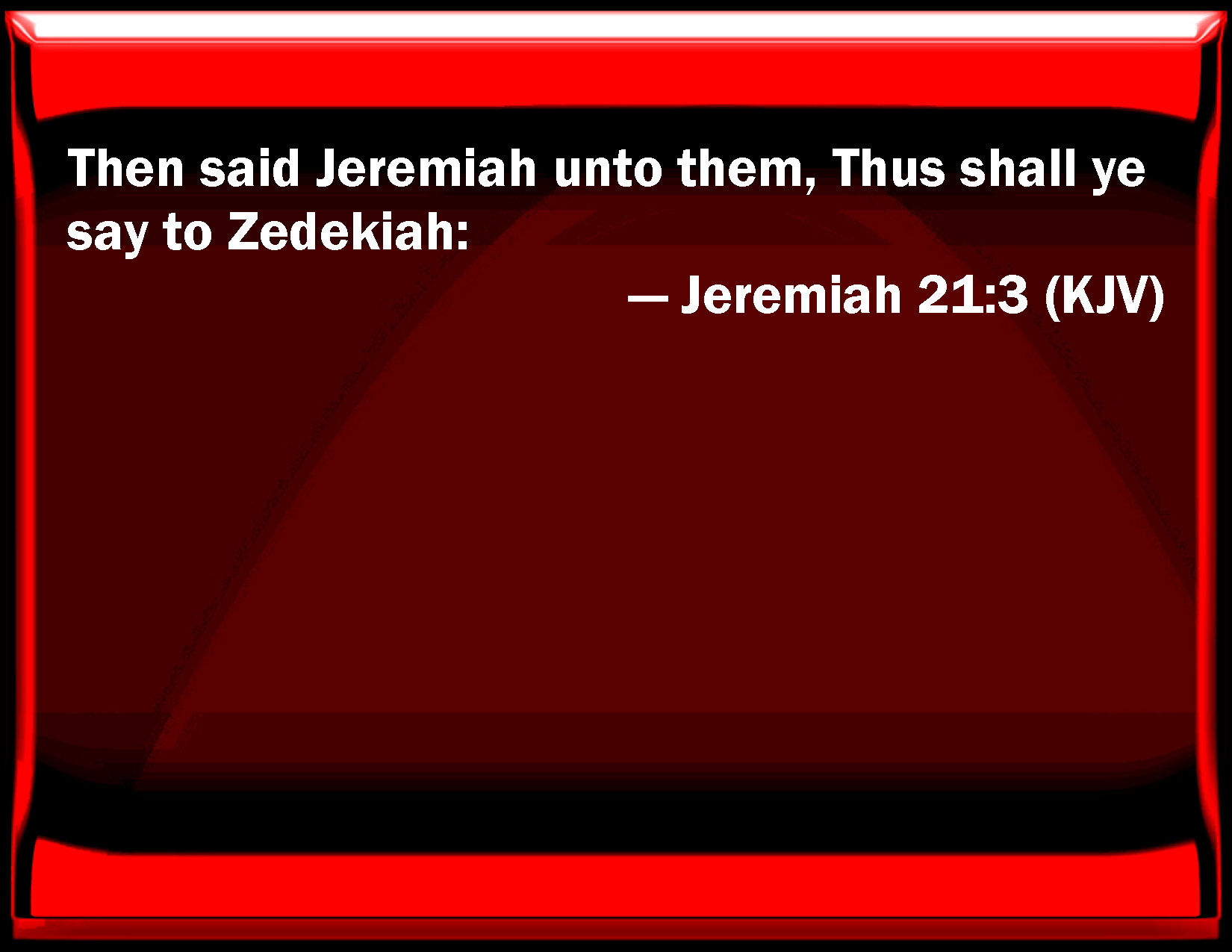 Jeremiah 21:3 Then said Jeremiah to them, Thus shall you say to Zedekiah: