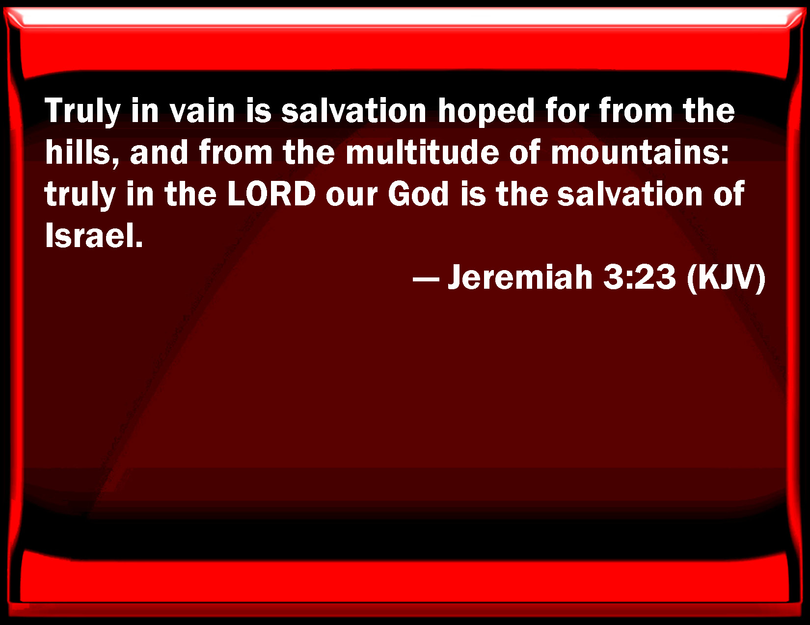 Jeremiah 3:23 Truly in vain is salvation hoped for from the hills, and from the multitude of mountains: truly in the LORD our God is the salvation of Israel.