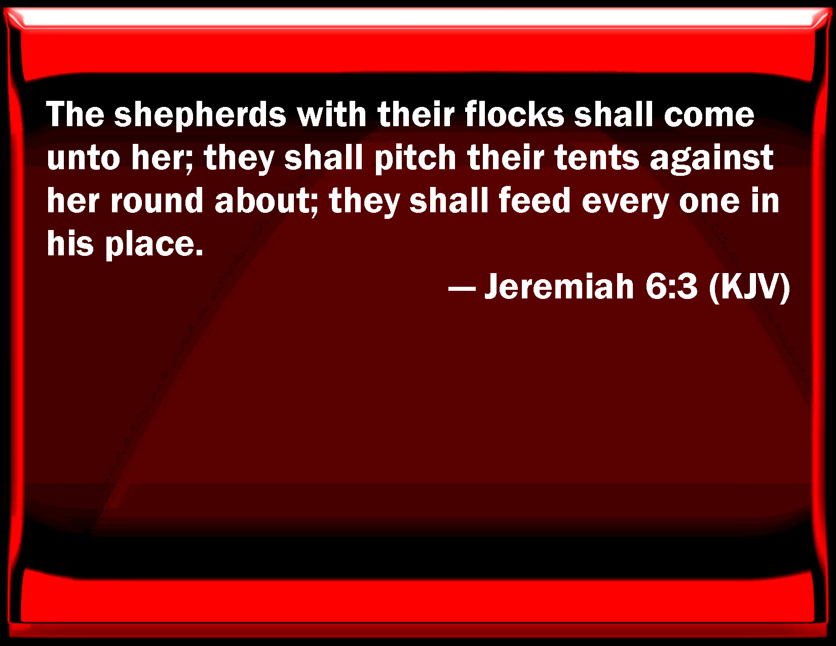 Jeremiah 6:3 The shepherds with their flocks shall come to her; they shall pitch their tents against her round about; they shall feed every one in his place.