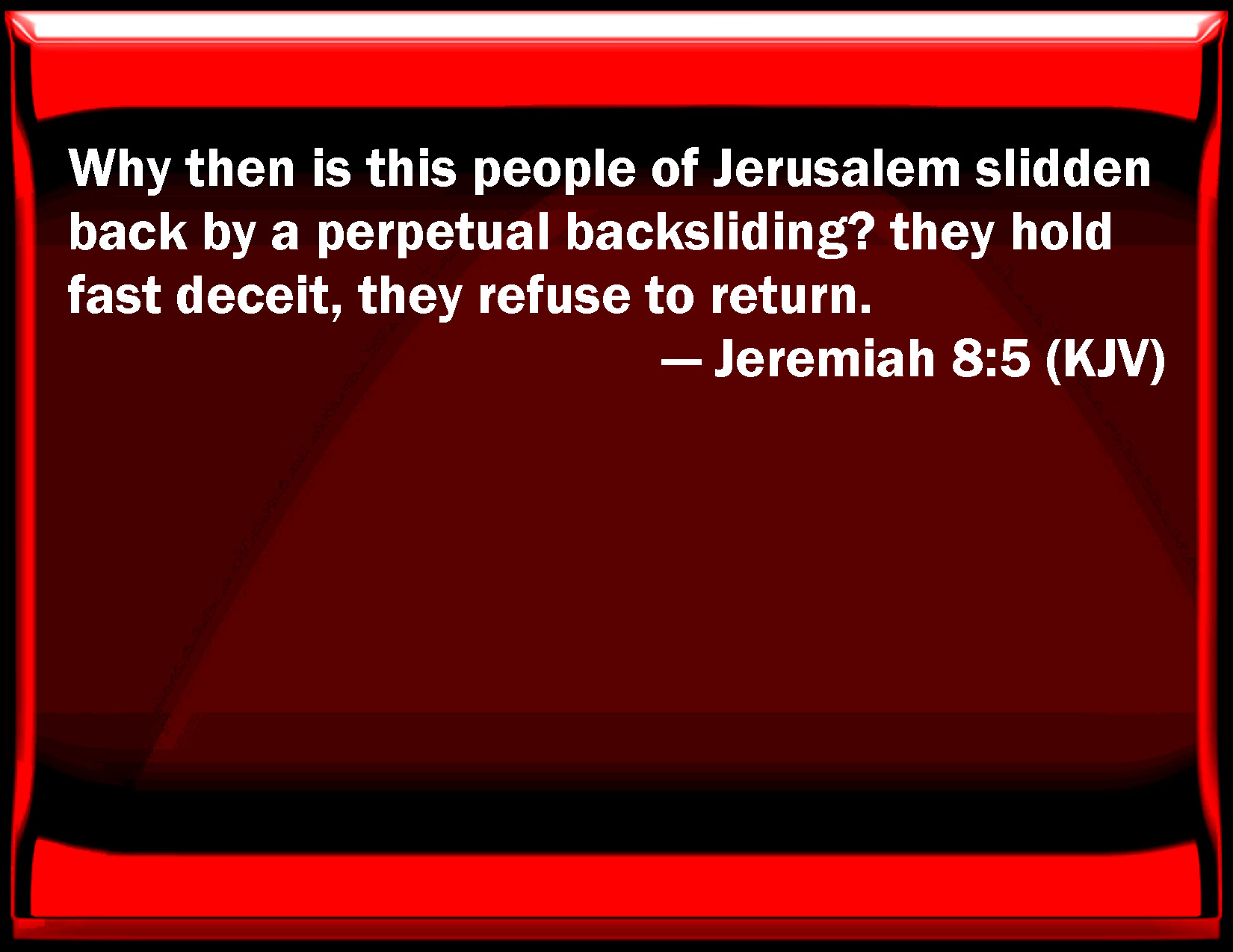 Jeremiah 8:5 Why then is this people of Jerusalem slid back by a perpetual backsliding? they hold fast deceit, they refuse to return.