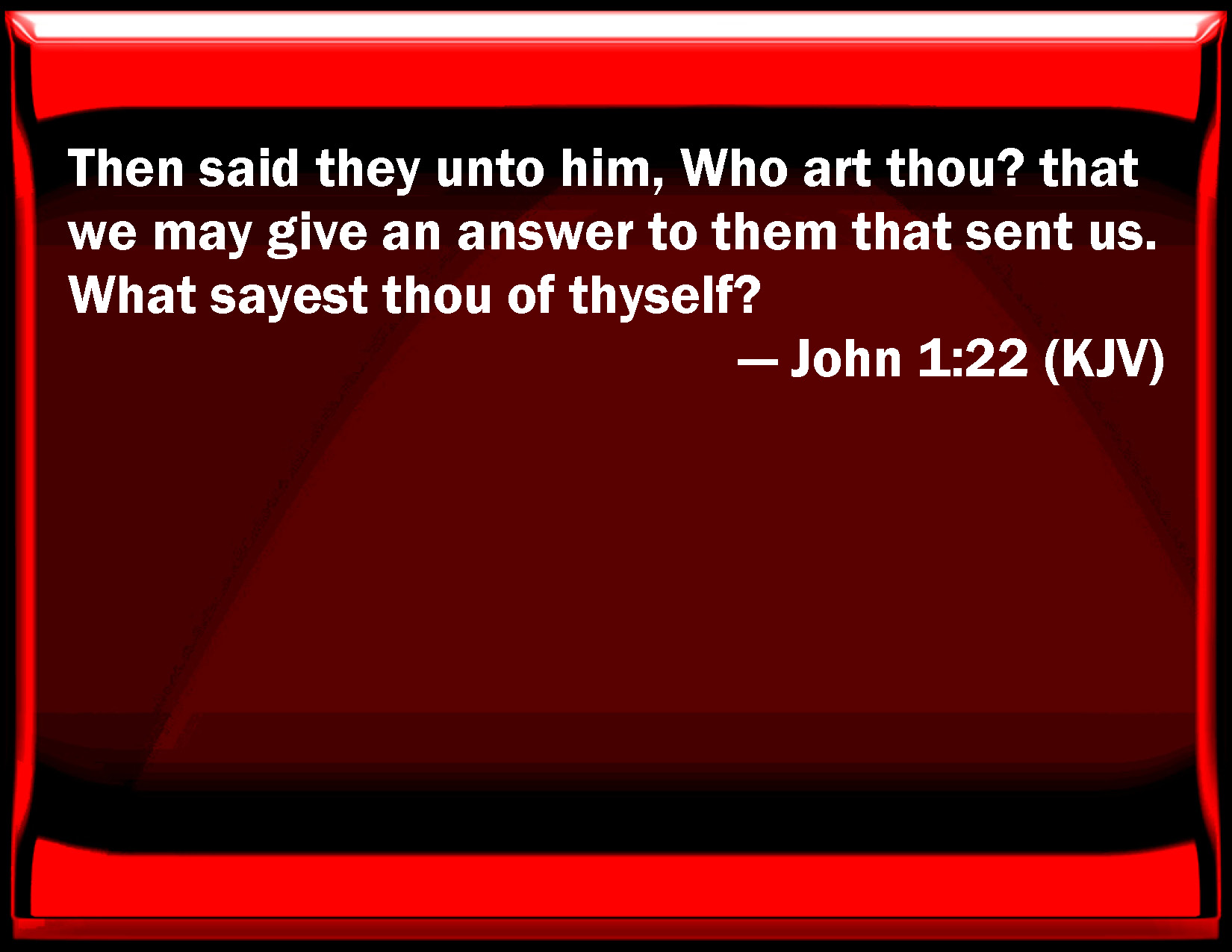 John 1:22 Then said they to him, Who are you? that we may give an answer to them that sent us. What say you of yourself?