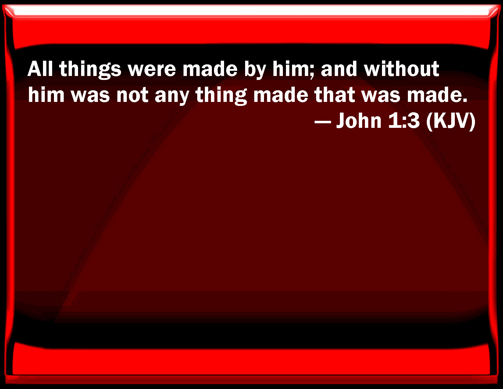John 1:3 All things were made by him; and without him was not any thing made that was made.