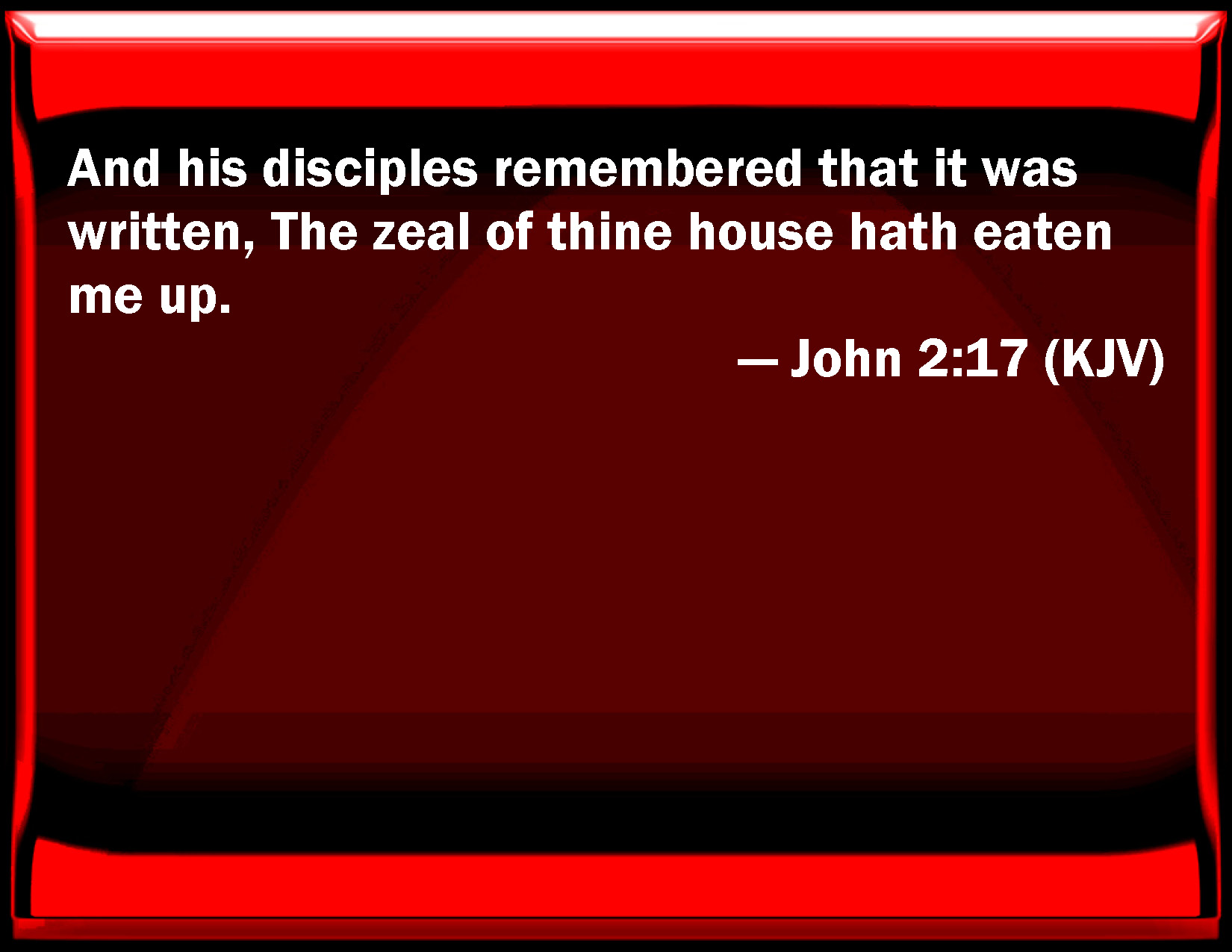 And his disciples remembered that it was written, The zeal of thy house hath eaten me up.