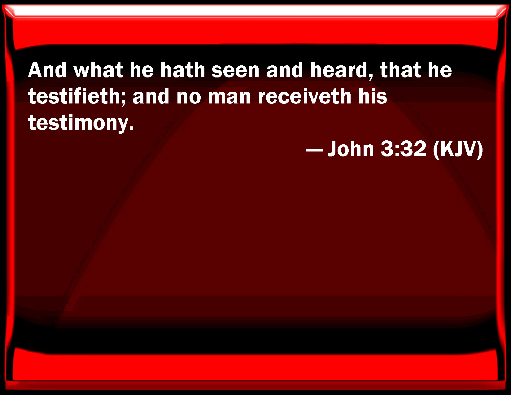 John 3:32 And what he has seen and heard, that he testifies; and no man receives his testimony.