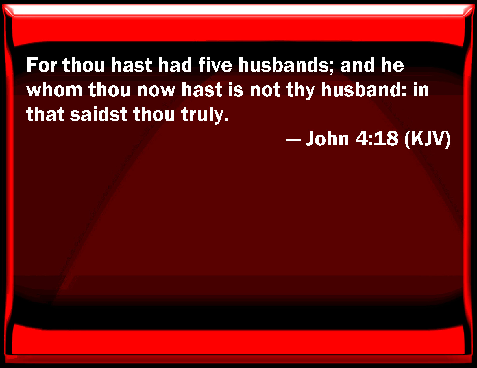 For thou hast had five husbands; and he whom thou now hast is not thy husband: in that saidst thou truly.