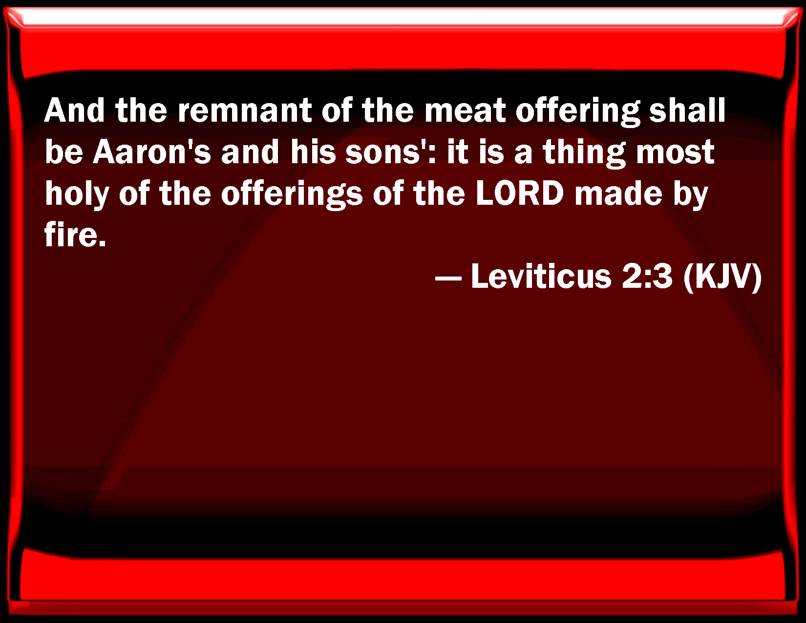 Leviticus 2:3 And the remnant of the meat offering shall be Aaron's and his sons': it is a thing most holy of the offerings of the LORD made by fire.