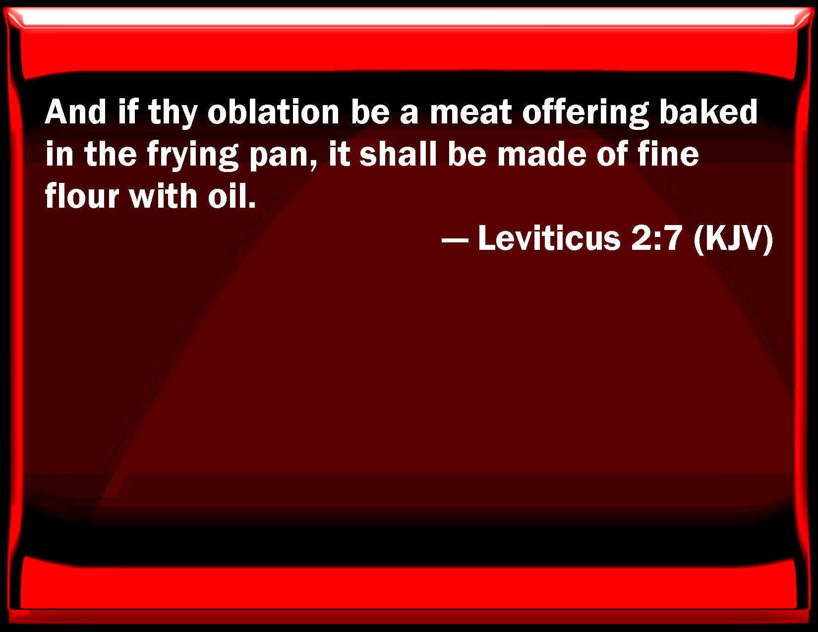 Leviticus 2:7 And if your oblation be a meat offering baked in the frying pan, it shall be made of fine flour with oil.